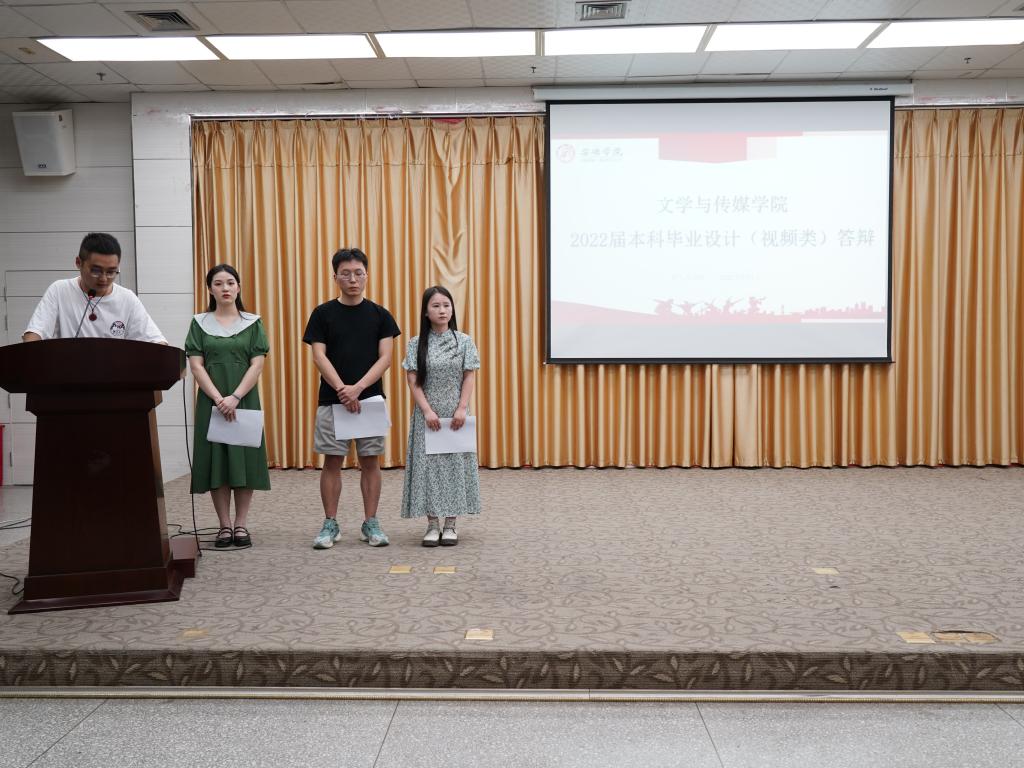 2022年6月1日19时,Beat365唯一官方网站2022届本科毕业设计(视频类)答辩会在江南校区图书馆报告厅举行。本次答辩会特邀安康电视台公共频道总监白堇同网络与新媒体专业教师谭诗民、王薇薇一起担任答辩评委,共有8位学生参加答辩。答辩会由答辩组秘书鲁雨溦主持,Beat365唯一官方网站院长杨运庚、党总支副书记杨海蓉、副院长李婷、网络与新媒体专业任课教师以及网络与新媒体专业2019—2021级学生到场观看。
