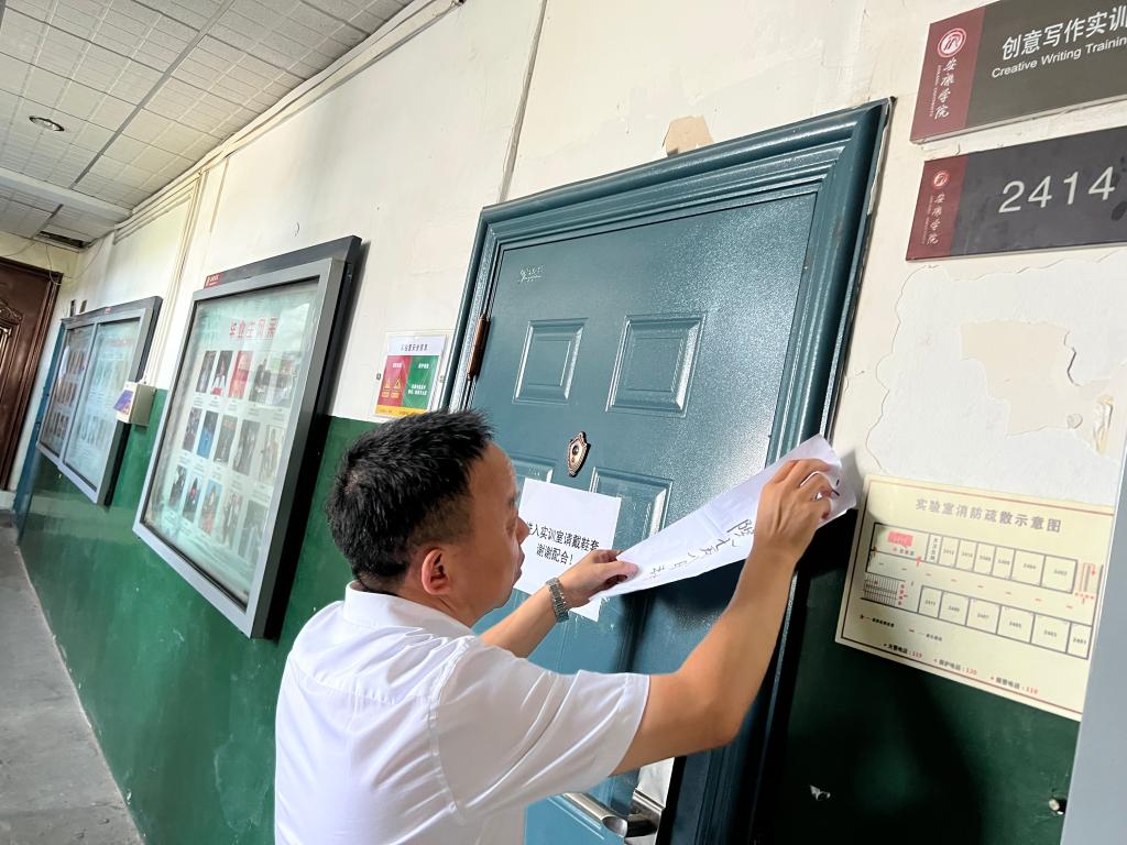 检查完毕后,检查人员对学院全部实训室大门加贴了学院封条。