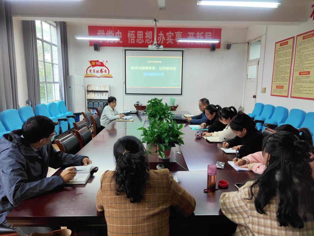 汉语言文学系也于当天组织公开观摩课,全系教师在1205教室观摩了安朝辉老师的《中国古代文学1》课程,并于课后在学院2307会议室进行了教学研讨。