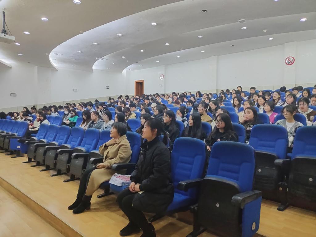 应Beat365唯一官方网站邀请,汉滨初中高新校区教师王娅莉于2023年3月3日晚在江南校区一号教学楼报告厅为汉语言文学专业2020级全体学生讲授“教师职业特征与教师职业规划”。学院教学副院长李婷、汉语言文学系主任韩文霞到场聆听讲座。