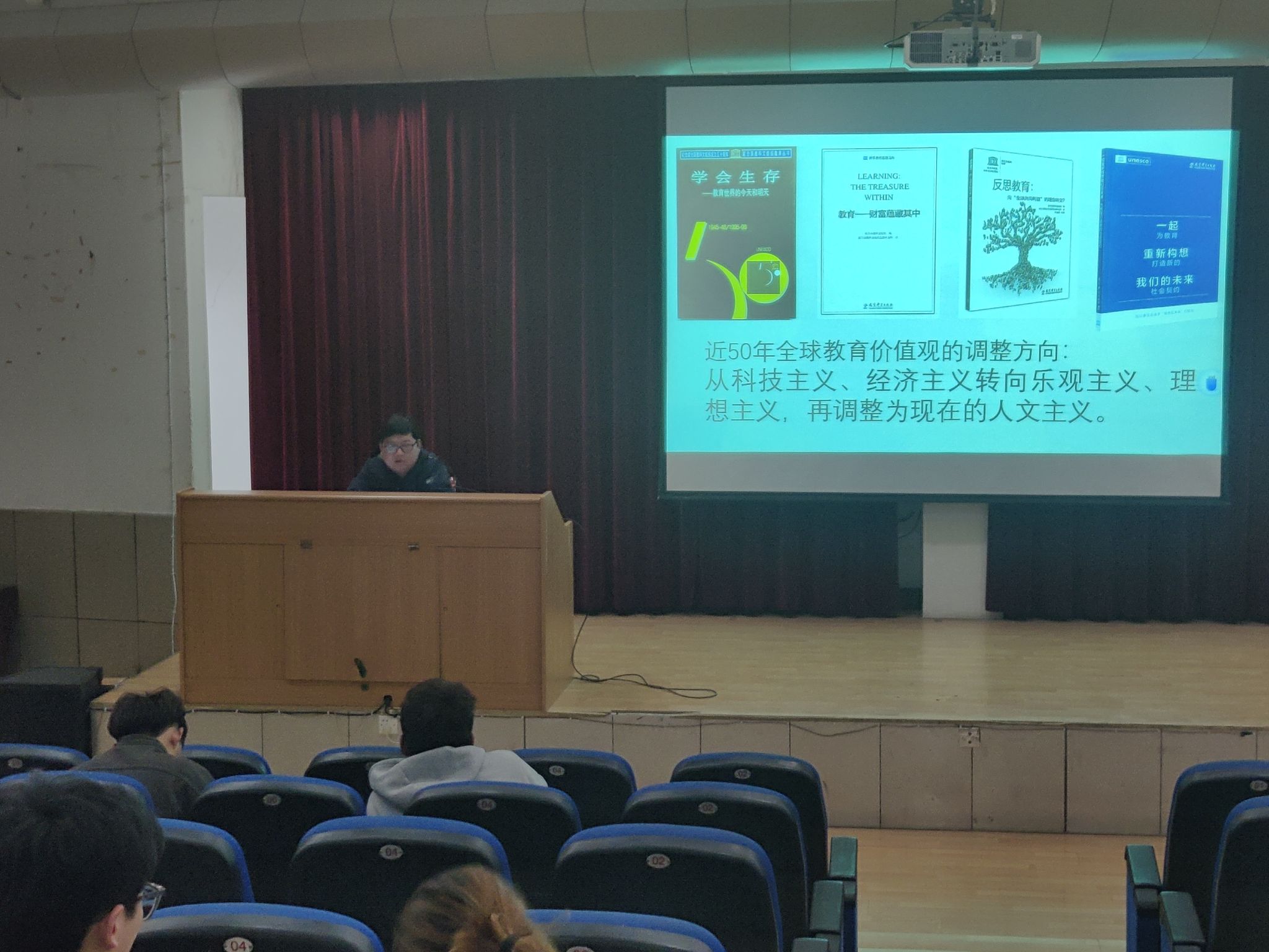 接着,李昊分别从分析认清关系、科学选择、追寻意义三方面进行讲述。他提醒大家认识以自身为核心的社会圈,在当前的时代背景下生存发展,学习政策、关注政策是一种必然要求。他分析了全球教育价值观的变化,提出学生们要为今后的就业发展做好能力和认知上的储备,在就业后选择合适的教学方法。他嘱咐同学们坚守本心,不要为达成目的改变本质,做真正有意义的事。