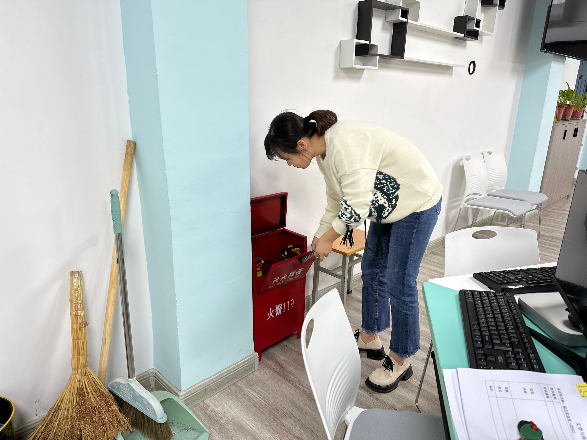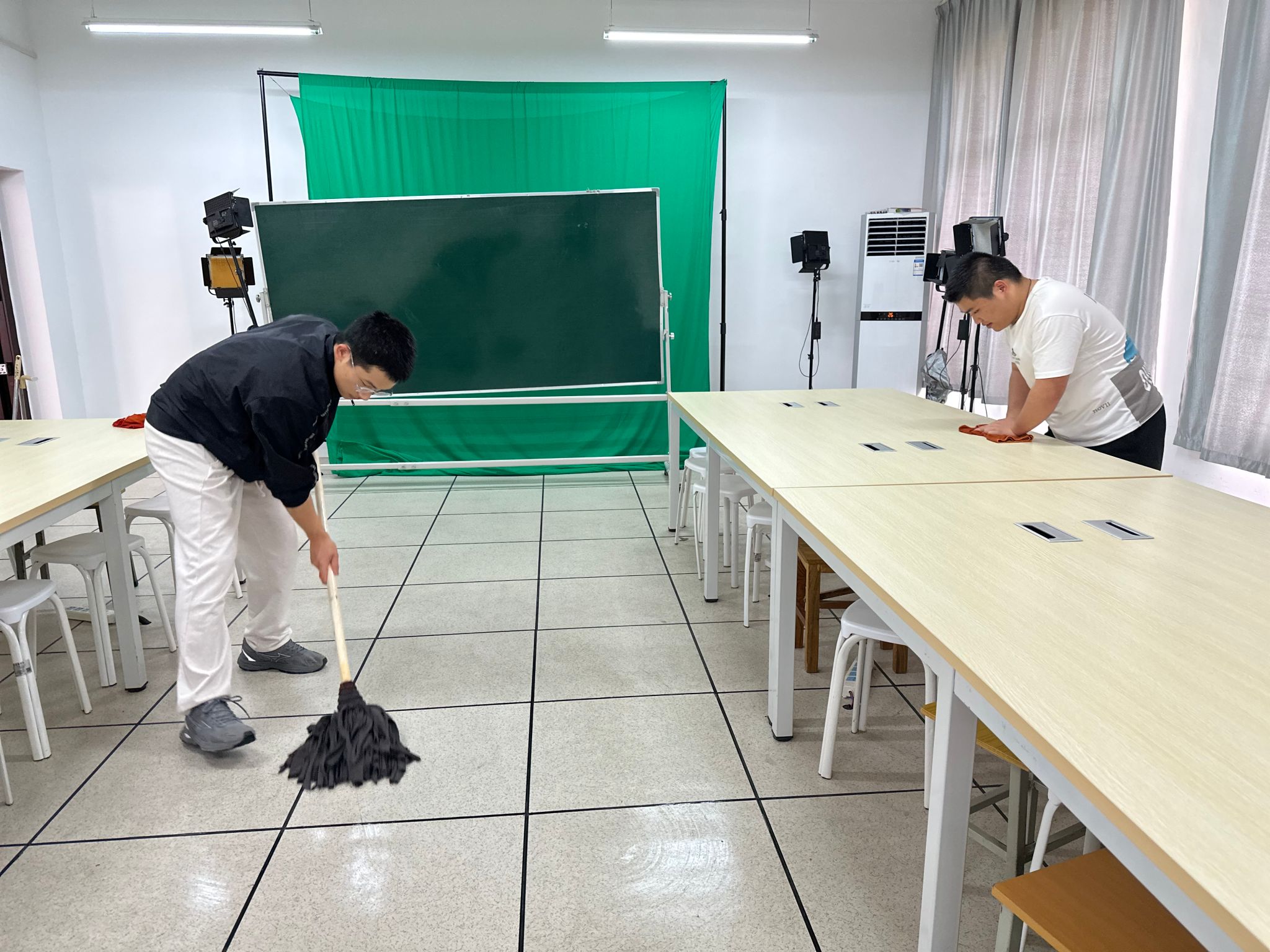 首先,秘书与新媒体系组织实训室值日生对网络与新媒体实训室、创意写作实训室、秘书综合实训室等进行了全面打扫。随后,学院副院长李婷、综合办公室主任崔瑜以及刘锦老师对实训室的电路安全、消防安全、器具安全、消杀情况、实训登记情况进行了全面检查,对可能存在的实训室安全隐患进行排查,对存在的问题及时记录,并将整改责任落实到人。