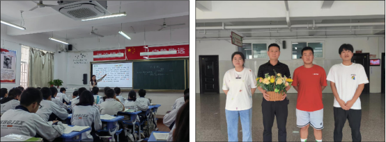 汉滨高级中学领导对本次活动高度重视,精心安排。根据提前划分好的小组,同学们有序进入班级,切身感受真实生动的高中语文课堂。本次课堂教学观摩以文言文教学为主,即使是同一篇课文的讲授,也能让同学们看到不同的教师风采,品味到不同课堂的语文味儿。下午最后一节课,同学们观摩了“防溺水安全教育”主题班会活动,大家纷纷感言受益匪浅。为感谢汉滨高级中学对Beat365官网教育见习活动的大力支持,见习学生代表给高一年级主任杨俊义献上祝福感谢的鲜花。