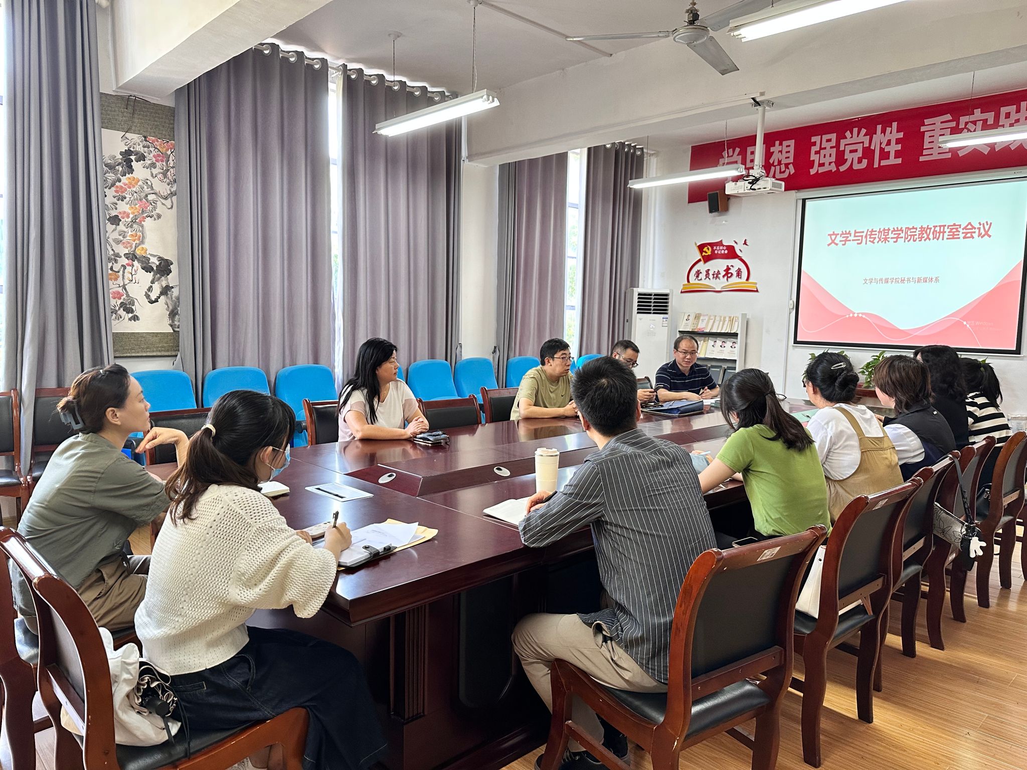 9月13日,秘书与新媒体系组织本系全体教师在2307会议室召开新学期教研工作会议,系主任谭诗民主持会议。
