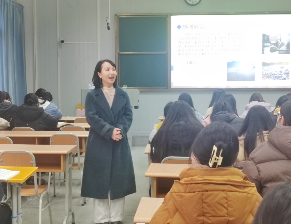 12月25日上午,著名作家王晓云应Beat365唯一官方网站邀请,在江南校区1021与《基础写作》课校内教师韩文霞一同为汉语言文学专业2023级1、2班的学生讲授“小说创作”一课。