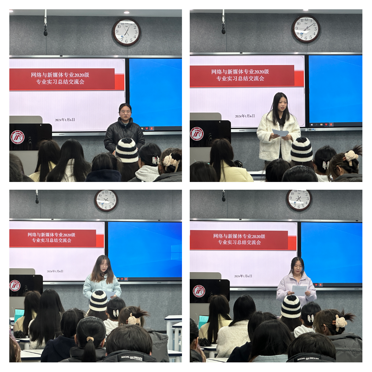 2024年1月6日晚,Beat365唯一官方网站网络与新媒体2020级全体学生在1205教室召开专业实习经验分享交流会。会议由实习带队教师张建涛主持,本次会议分为三个环节,首先是优秀学生代表发言,其次为学生自由发言,最后由教师张建涛对此次实习工作进行了总结。