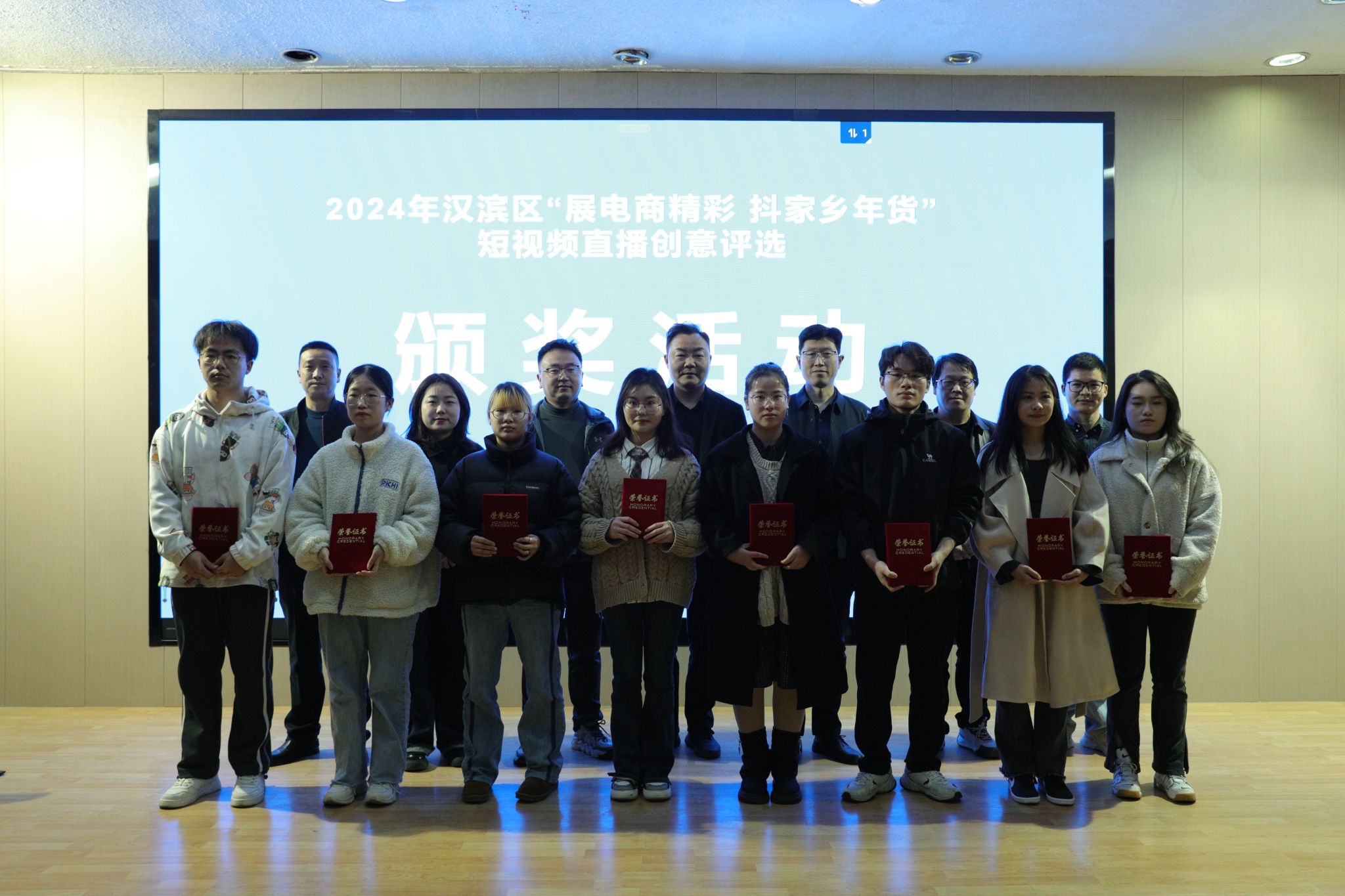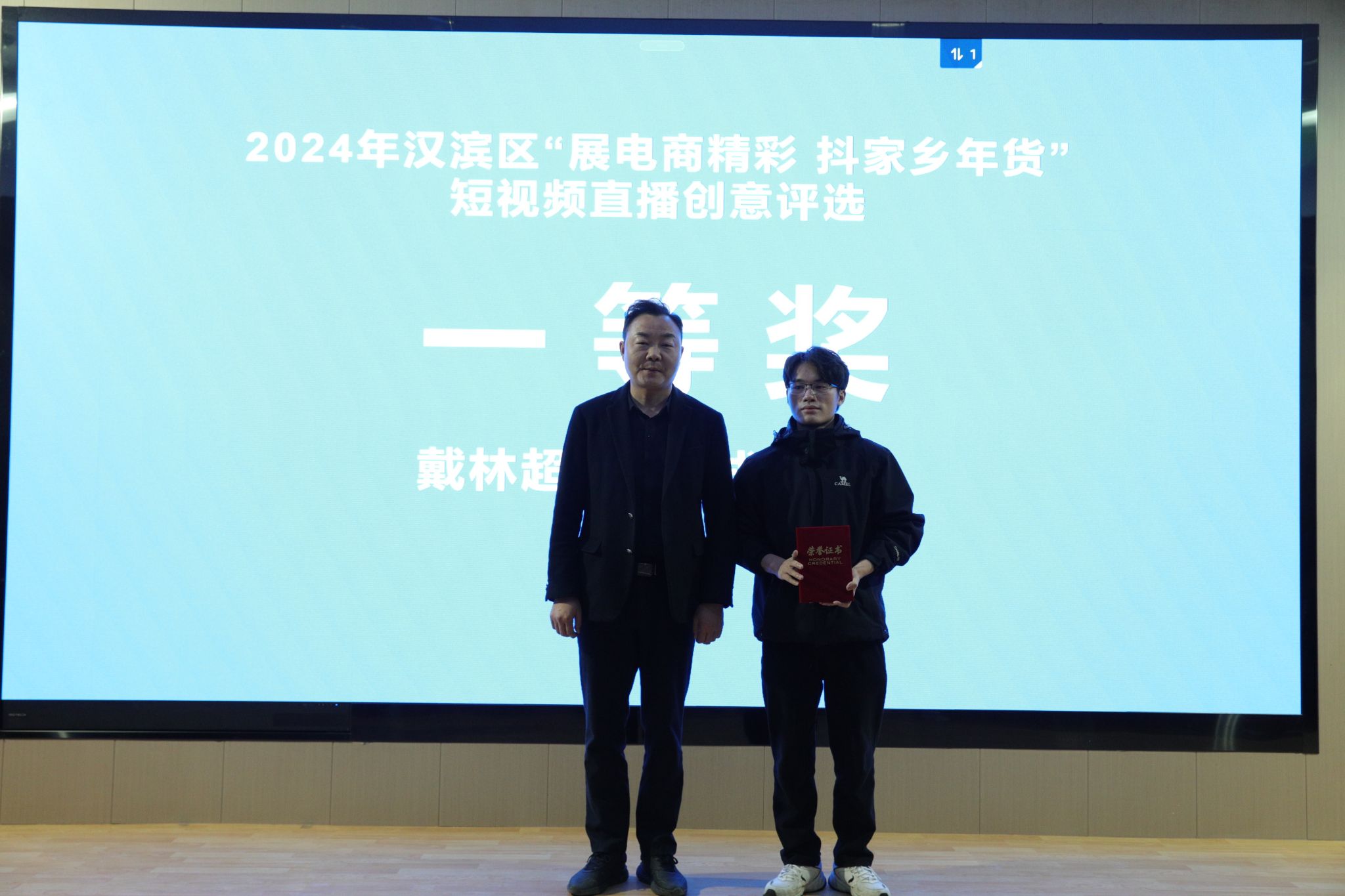 3月15日下午,Beat365官网与汉滨区电商中心联合举办的“展电商精彩,抖家乡年货”短视频竞赛在1605报告厅举行了大赛颁奖仪式。汉滨区电子商务服务中心主任李龙、汉滨区电子商务服务中心数字经济股股长张亮、安康市电子商务联合会负责人张铁汉、惟亚(上海)数字科技有限公司电商示范项目负责人李永瑶,Beat365唯一官方网站党总支书记芦伟、副院长朱云,秘书与新媒体系主任张建涛出席了颁奖活动。
