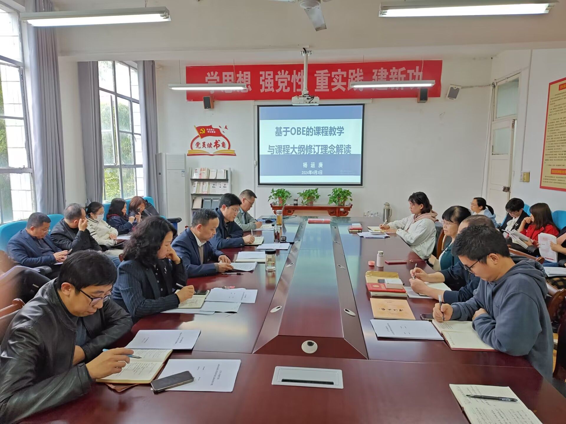 为进一步推进Beat365官网本科教育教学审核评估工作,深入理解OBE教学理念,提升Beat365官网教育教学整体水平,4月3日下午,Beat365唯一官方网站在学院会议室组织全体教师开展专题学习,院长杨运庚为全体教师做了《基于OBE的课程教学与课程大纲修订理念解读》专题培训。