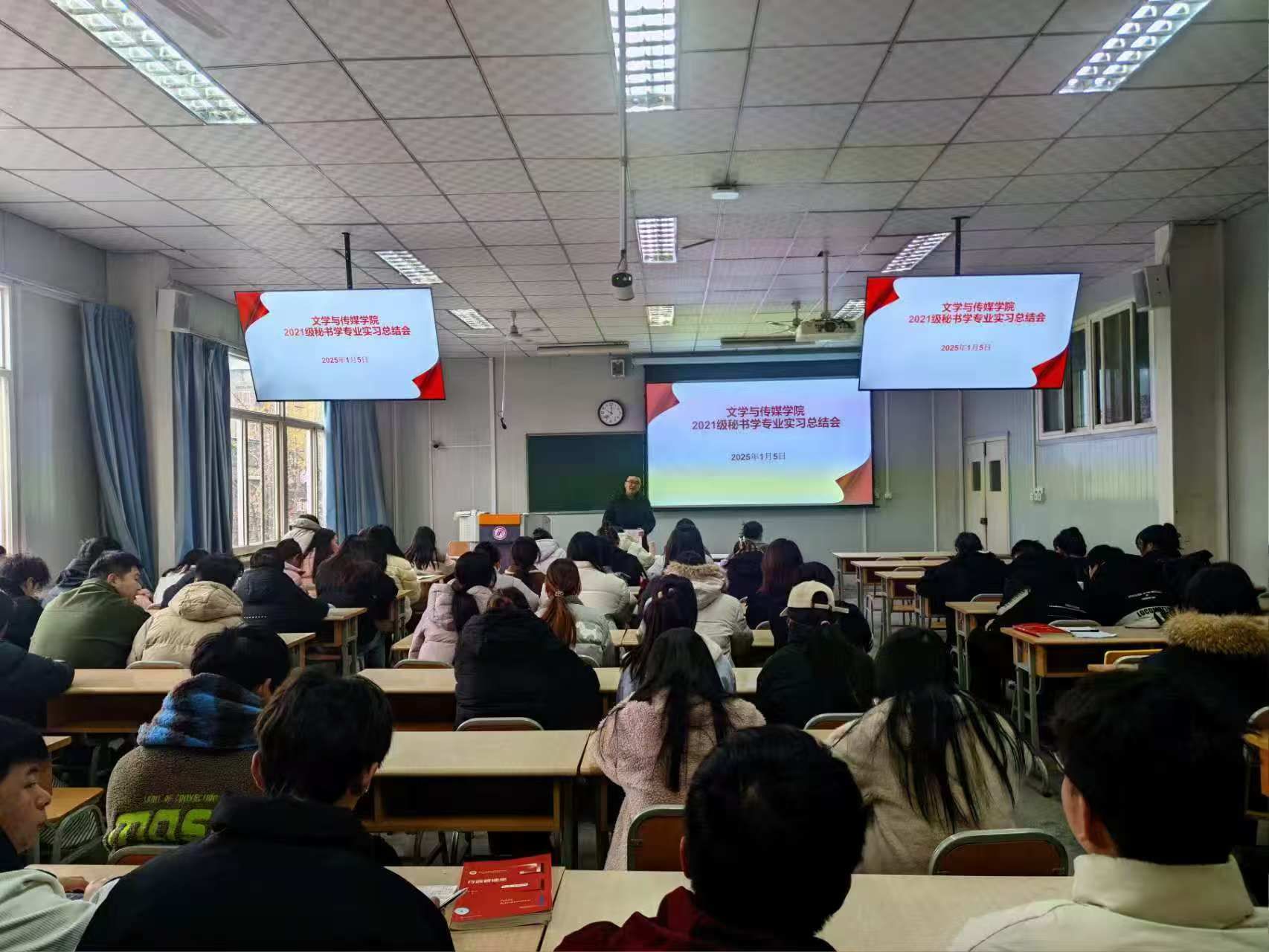 2025年1月5日,Beat365唯一官方网站在1026教室召开秘书学专业实习总结会,副院长朱云、实习带队教师胡少山以及2021级、2022级秘书学专业学生参会,会议由实习生李欣窈主持。