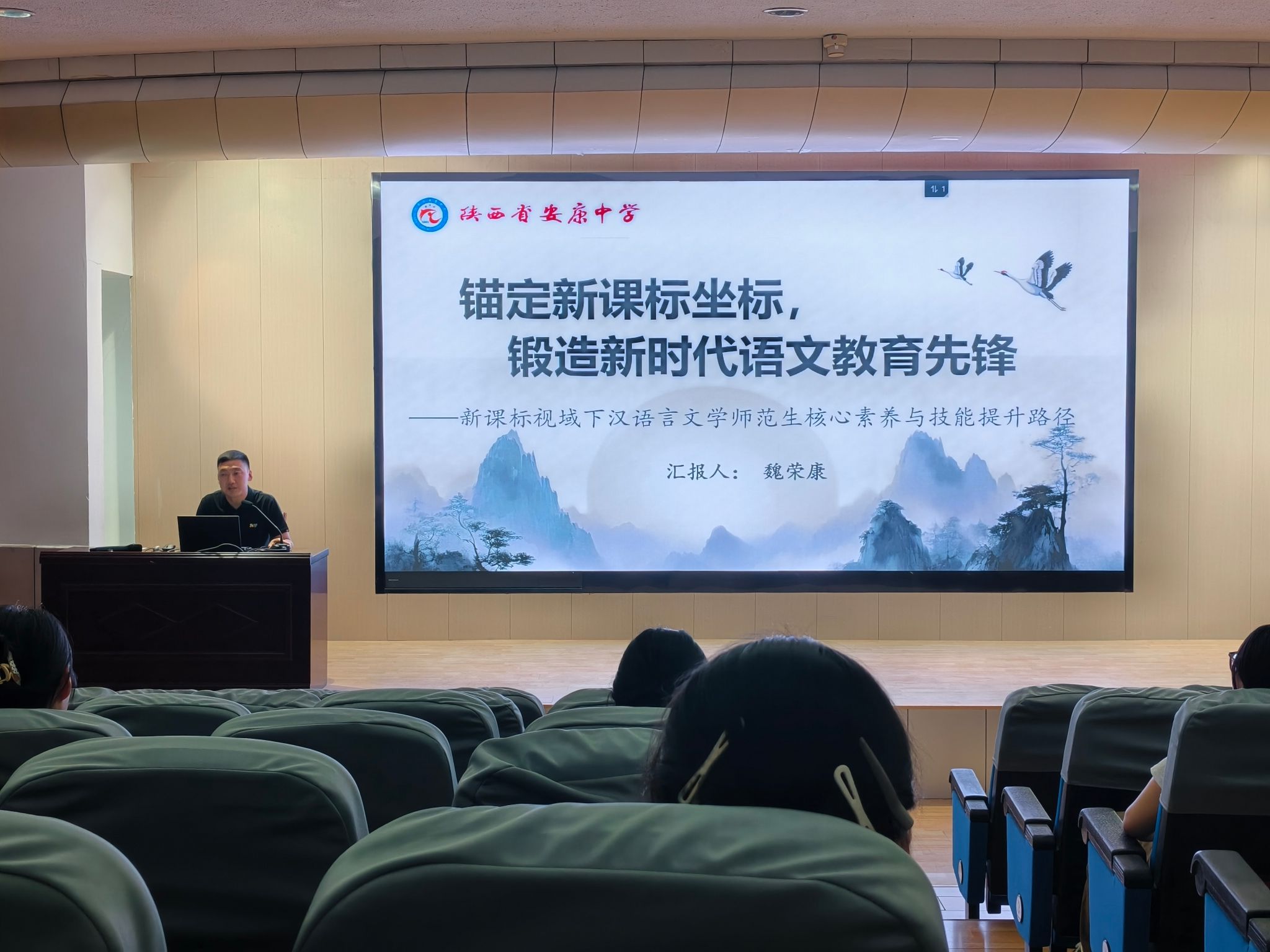 为助力汉语言文学师范生适应新课标要求,提升教育教学能力,5月7日Beat365唯一官方网站在江南校区一号楼报告厅举办了题为"新课标视域下汉语言文学师范生核心素养与技能提升路径"的专题讲座。本次活动邀请安康中学魏荣康老师主讲,汉语言文学系主任谭诗民博士主持,2022级全体师范生现场听取了报告。