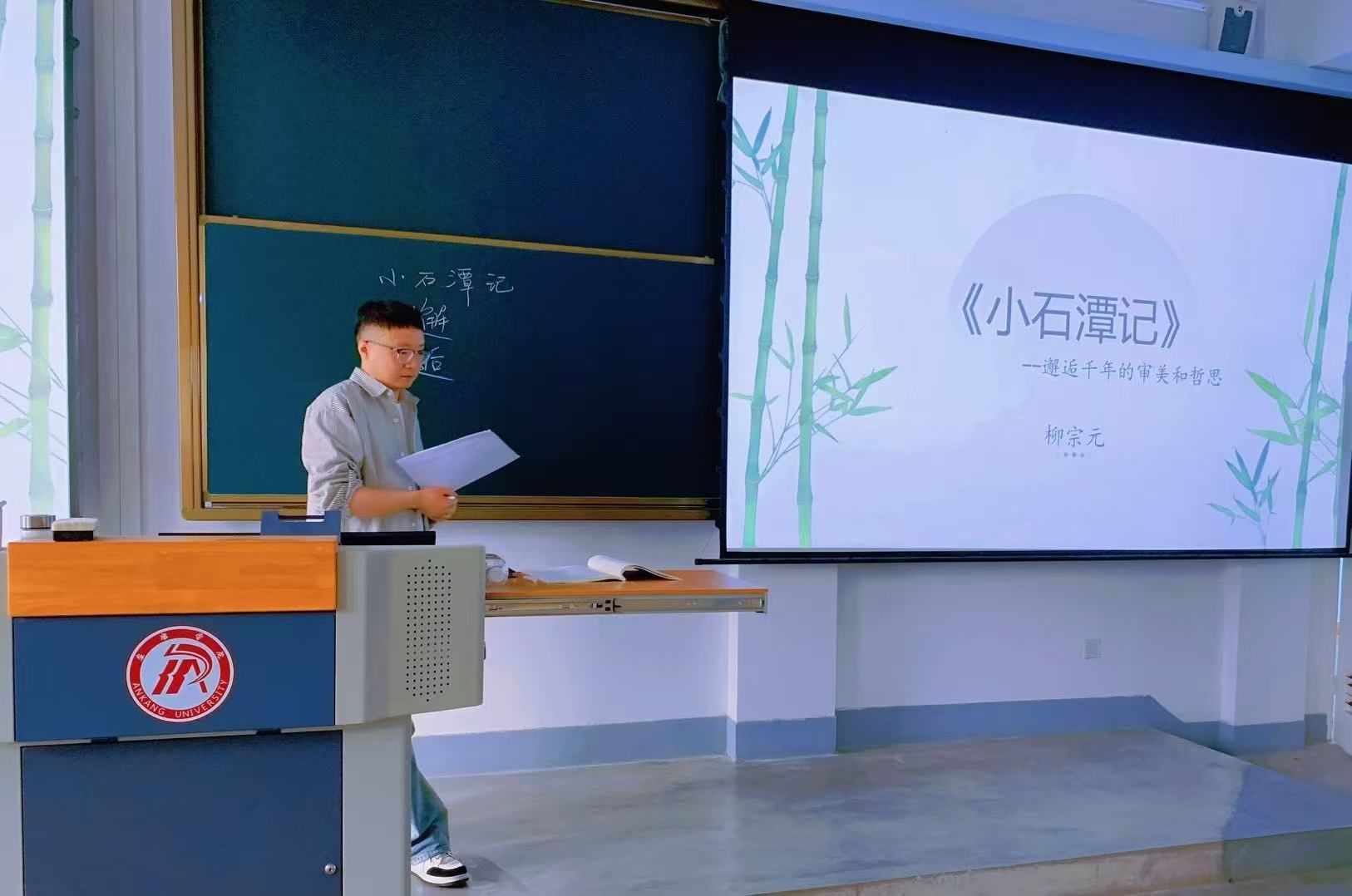 蒋宇浩老师以“诵读,感知文脉基调——品读,感受独特审美——对读,感悟独特哲思”为思路为大家展示了《小石潭记》一文如何开展任务驱动式教学。