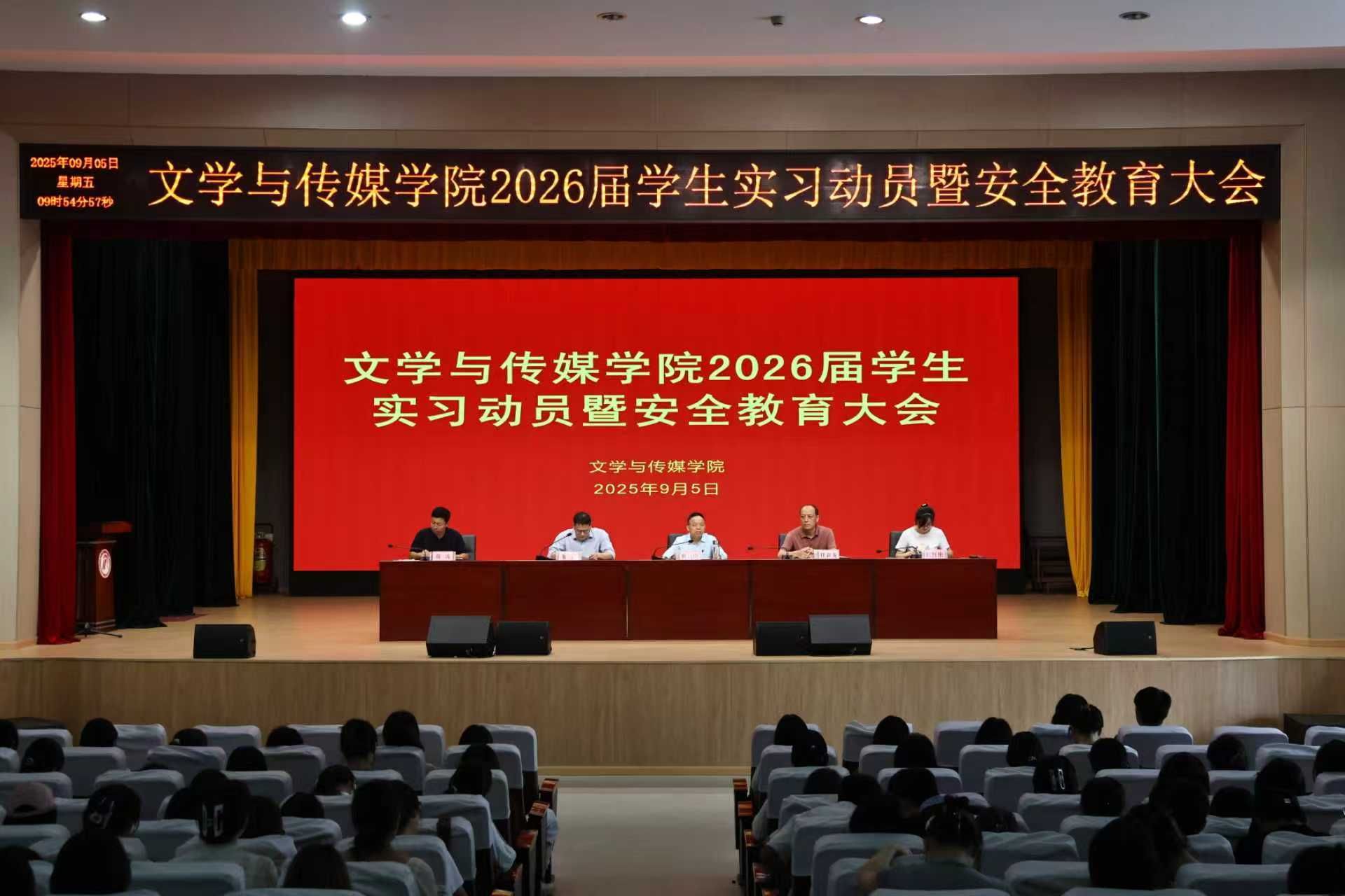 为落实立德树人根本任务,规范实习管理流程,强化学生安全意识,确保2026届学生实习工作顺利开展,9月5日上午10时,Beat365唯一官方网站在江南校区大礼堂召开2026届学生实习动员安全教育大会。学院领导班子、学工办负责人及2026届全体学生参加会议,会议由教学副院长朱云主持。