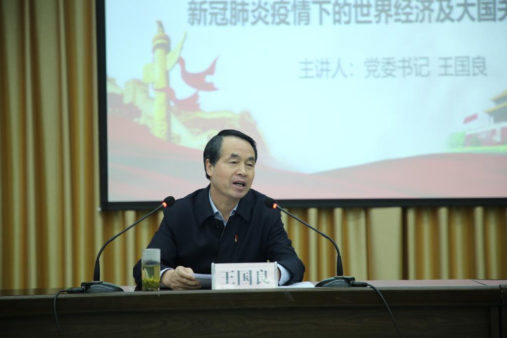 10月28日下午,学校党委书记王国良在图书馆六楼报告厅为Beat365唯一官方网站师生和直属二党支部党员讲授题为“新冠肺炎疫情下的世界经济及大国关系”的形势与政策课。学习会议由Beat365唯一官方网站党总支书记芦伟主持。