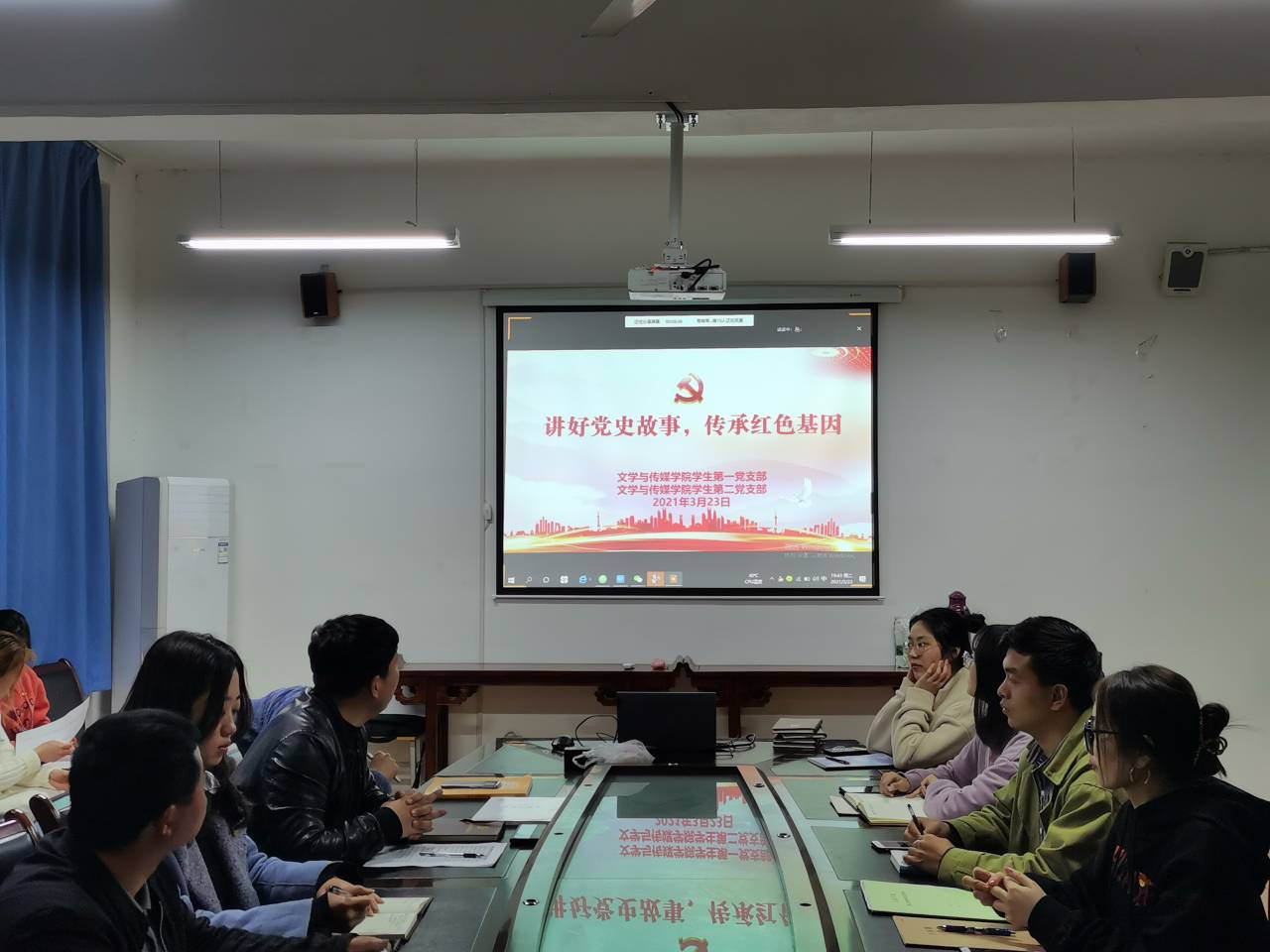 在庆祝中国共产党成立100周年之际,为深入学习贯彻习近平总书记在党史学习教育动员大会上的重要讲话精神,全面落实开展党史学习教育,引领学生党员增强政治责任感和历史使命感,从百年党史中汲取奋斗动力,从党史学习教育中凝聚力量,用实际行动诠释共产党人的初心使命,2021年3月23日晚上7:30,Beat365唯一官方网站学生第一、第二党支部通过线上线下相结合的形式,联合开展“讲好党史故事,传承红色基因”主题党日活动。学生第一、第二党支部全体党员参加了本次活动。活动由学生第二党支部书记薛涛主持。