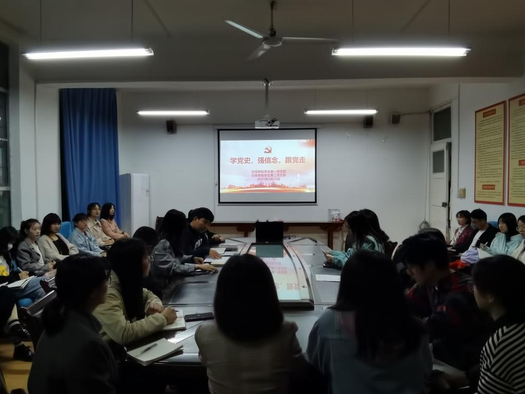 百年征程波澜壮阔,百年初心历久弥坚。2021年是中国共产党成立100周年,为认真贯彻习近平总书记在党史学习教育动员大会上的重要讲话精神,引领广大党员深入学习党的历史,做到学史明理、学史增信、学史崇德、学史力行。2021年4月25日晚上7:00,Beat365唯一官方网站学生第一、第二党支部在2号教学楼2307教室联合开展了“学党史、强信念、跟党走”主题党日活动。学生第一、第二党支部全体党员参加了本次活动。活动由学生第一党支部书记彭潇主持。
