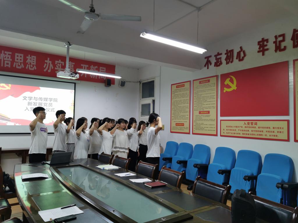 9月23日晚,Beat365唯一官方网站党总支在江南校区2307教室举行了预备党员入党宣誓仪式,党总支副书记杨海蓉、学生第一党支部书记彭潇、学生第二党支部书记薛涛、各支部委员及16名预备党员参加了此次入党宣誓仪式。会议由学生第二党支部书记薛涛主持。