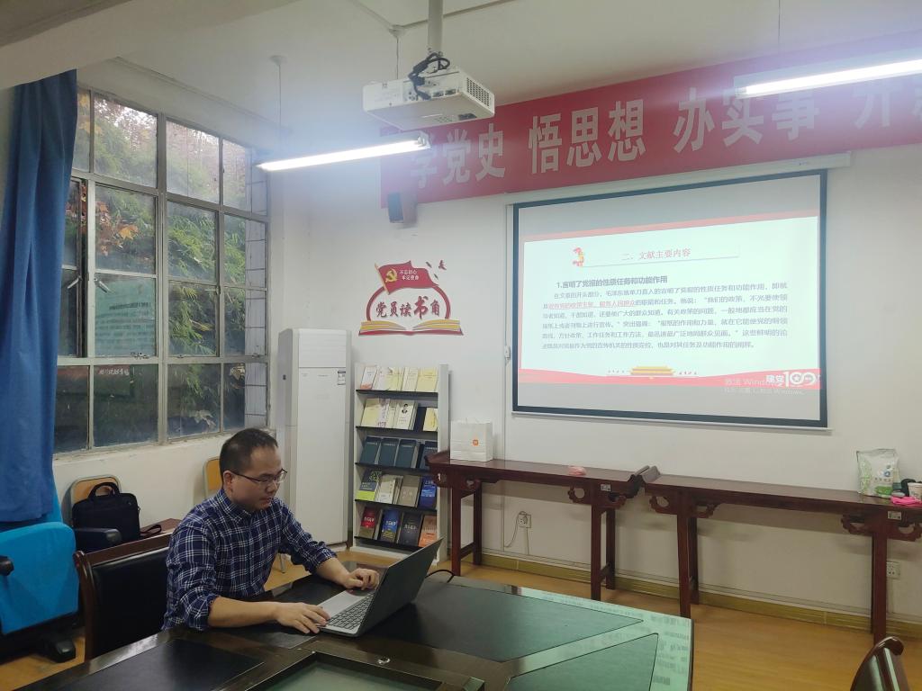 6月15日,Beat365唯一官方网站教工第二党支部在2307会议室开展了“中国共产党新闻思想史学习”读书活动。活动由支部书记谭诗民主持,支部全体党员参加了读书活动。本次读书活动主讲人为谭诗民,阅读篇目为毛泽东《对<晋绥日报>编辑人员的谈话(一九四八年四月二日)》。