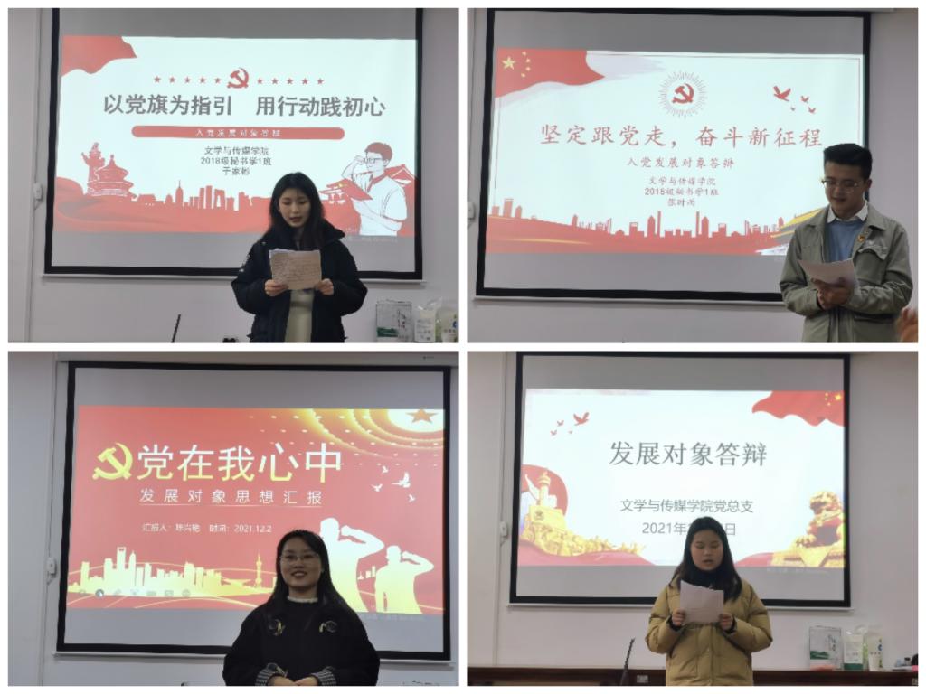 答辩同学分别从入党动机、对党的认识、思想汇报、学习工作等方面进行阐述。答辩组老师从党的理论知识、入党动机、对党的纲领政策的认知,以及个人成长等方面进行提问,同学们应答思路清晰,内容准确,充分体现了党组织对发展对象的教育培养实效。