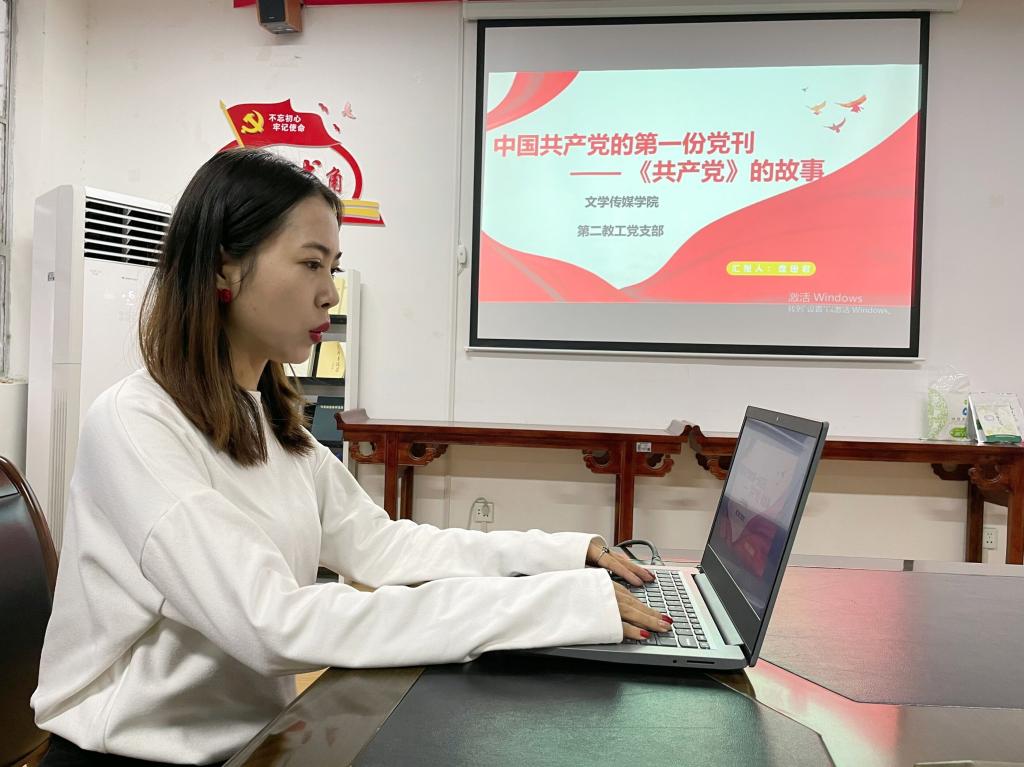 9月16日,Beat365唯一官方网站教工第二党支部在2307会议室开展了“中国共产党新闻思想史学习”读书活动。活动由支部书记谭诗民主持,支部全体党员参加了读书活动。本次读书活动主讲人为支部宣传委员盘珊君,学习主题是中国共产党的第一份党刊——《共产党》的故事。