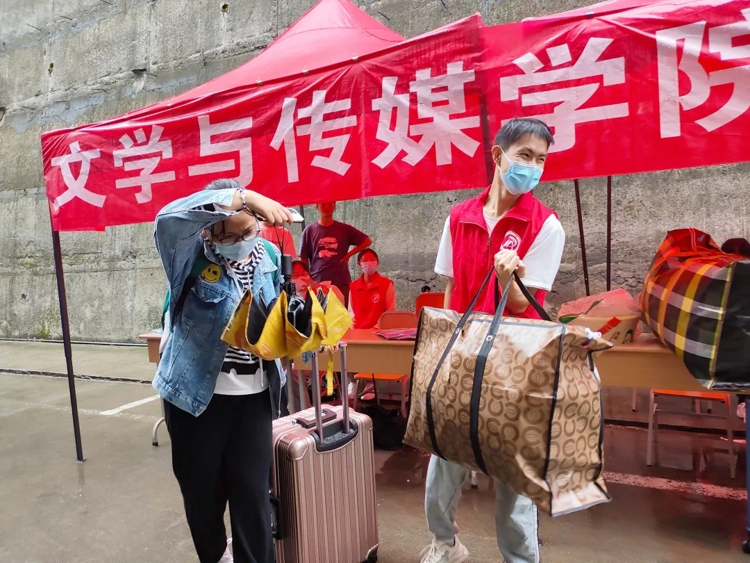 Beat365唯一官方网站学生第一、二党支部的志愿者们在十号楼门前的文传迎新点热情相迎,他们引导新生到体育馆报道处办理入学登记、搬运行李、宿舍登记、领日用品、办校园卡等一应入学手续。然后继续来回穿梭于校园,迎接下一位新同学。