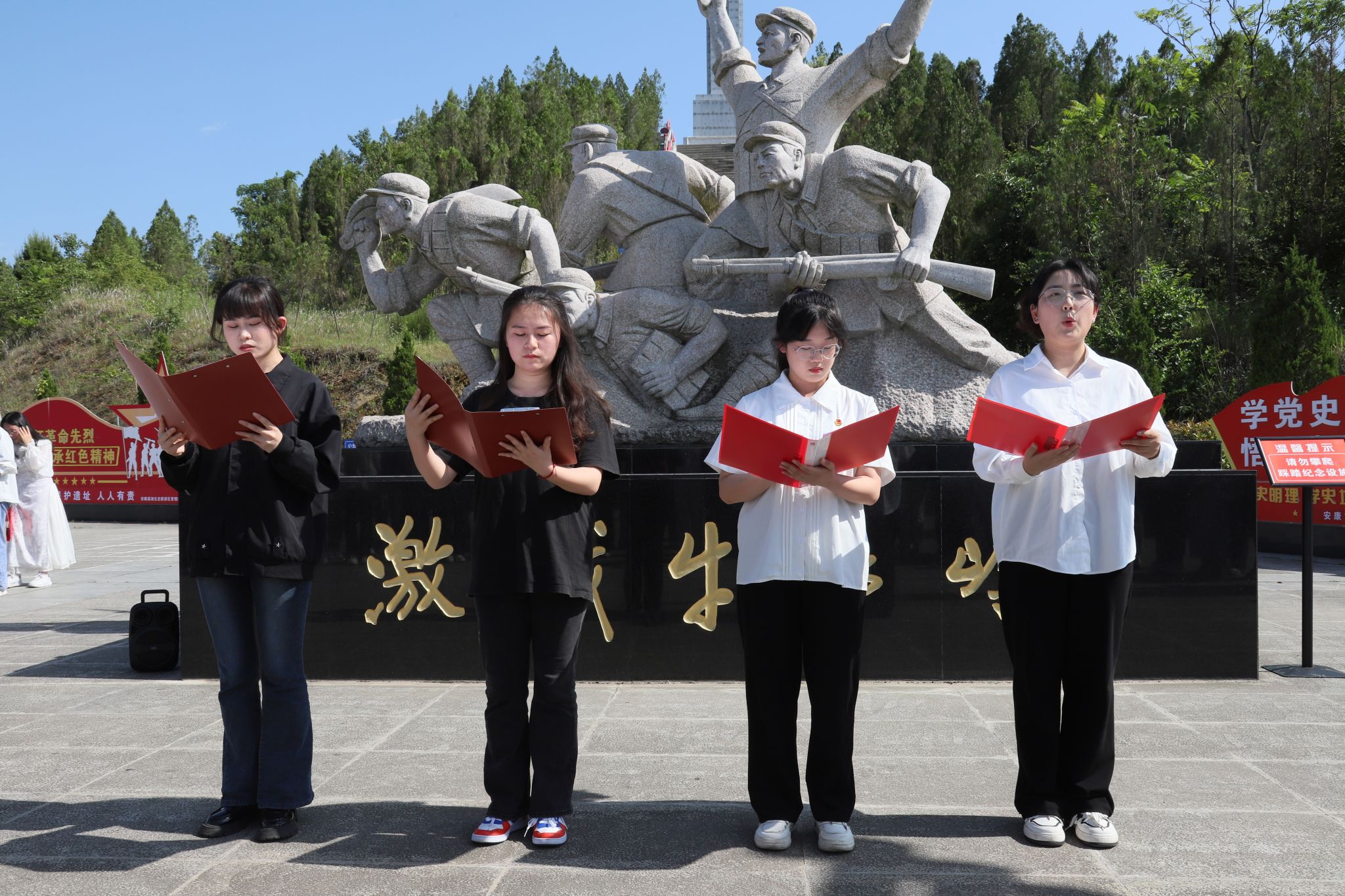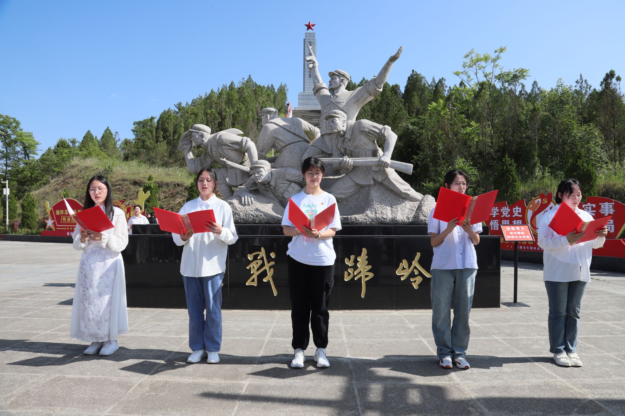 通过讲解员讲解,大家深入了解了牛蹄岭战役的背景和过程,深刻认识到战争烽火年代先烈们的革命精神和英雄气概。陈兴艳同学带领全体党员重温了入党誓词。在革命纪念广场,参加主题活动的同学献上了以“请党放心 强国有我 ”为主题的诗歌朗诵会。他们用铿锵有力的声音,朗诵着革命先烈们的事迹和英勇事迹,现场气氛肃穆庄严。大家心潮澎湃,纷纷表示要以革命先烈为榜样,发扬革命精神,为实现中华民族伟大复兴的中国梦而不懈奋斗。