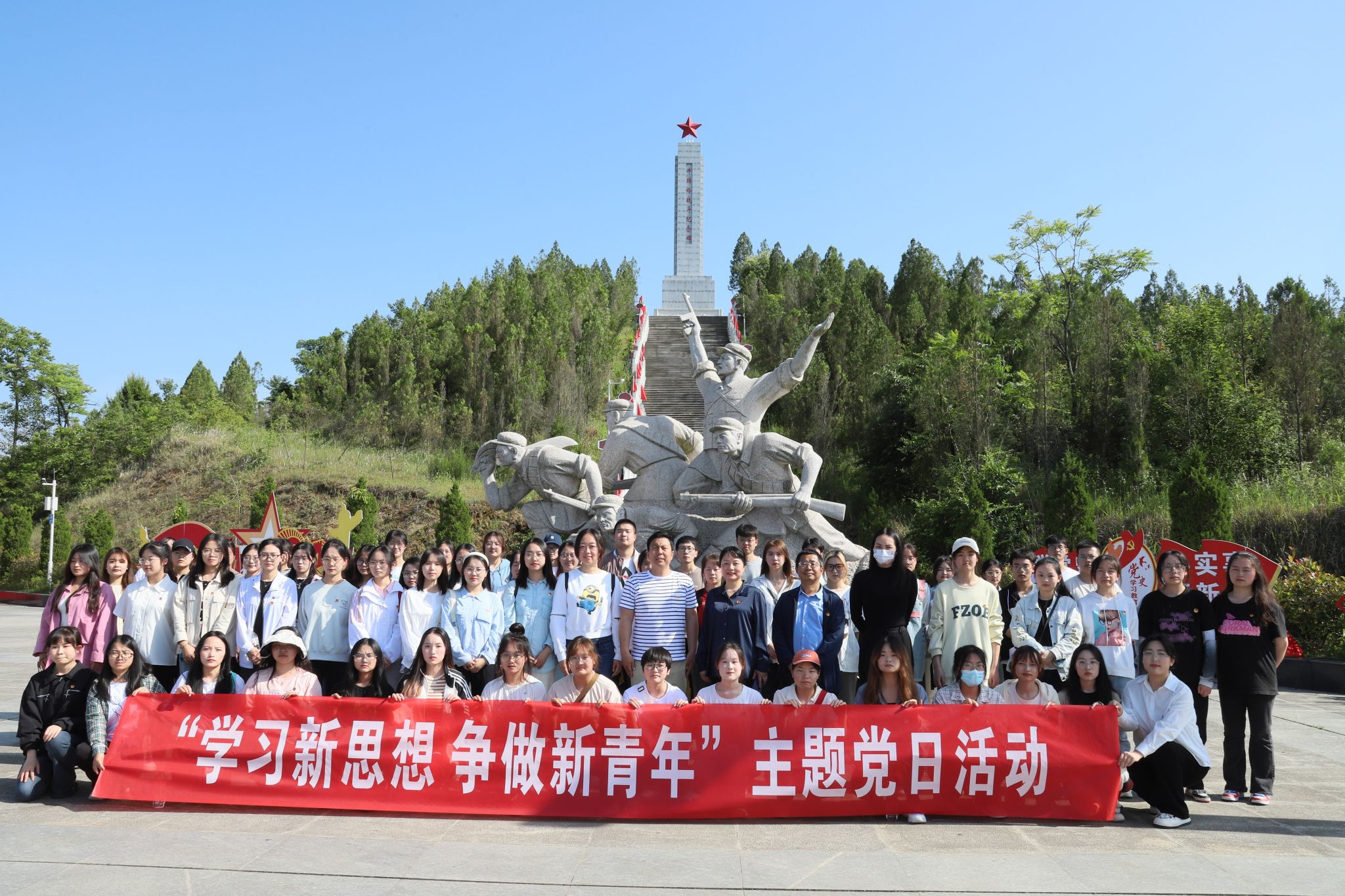 为深入学习习近平新时代中国特色社会主义思想,贯彻落实党的二十大精神,培育青年学子爱国主义情怀,让红色基因世代赓续,2023年5月24日下午,Beat365官网党总支学生第一、第二党支部组织学生党员前往牛蹄岭战斗纪念碑开展“永远跟党走,建功新时代”主题党日活动。Beat365唯一官方网站党总支副书记杨海蓉、学生第一党支部书记李欣逸、学生第二党支部书记薛涛、团总支书记彭潇以及辅导员邹棠华参加了此次主题党日活动。