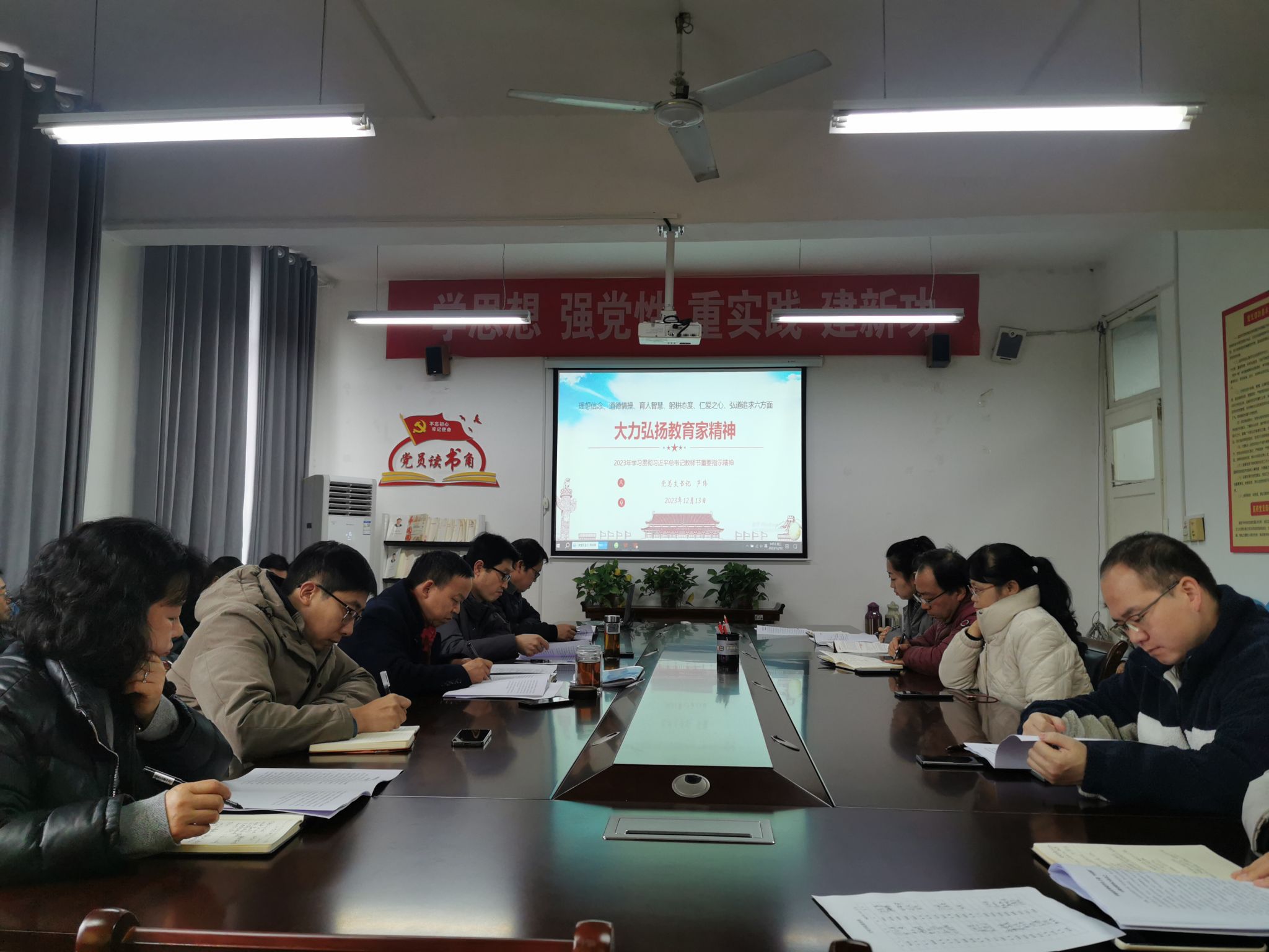 为进一步提升Beat365官网教职工的政治素养和理论水平,Beat365唯一官方网站党总支书记芦伟12月13日在2307会议室为全体教职工作了大力弘扬教育家精神的专题党课。