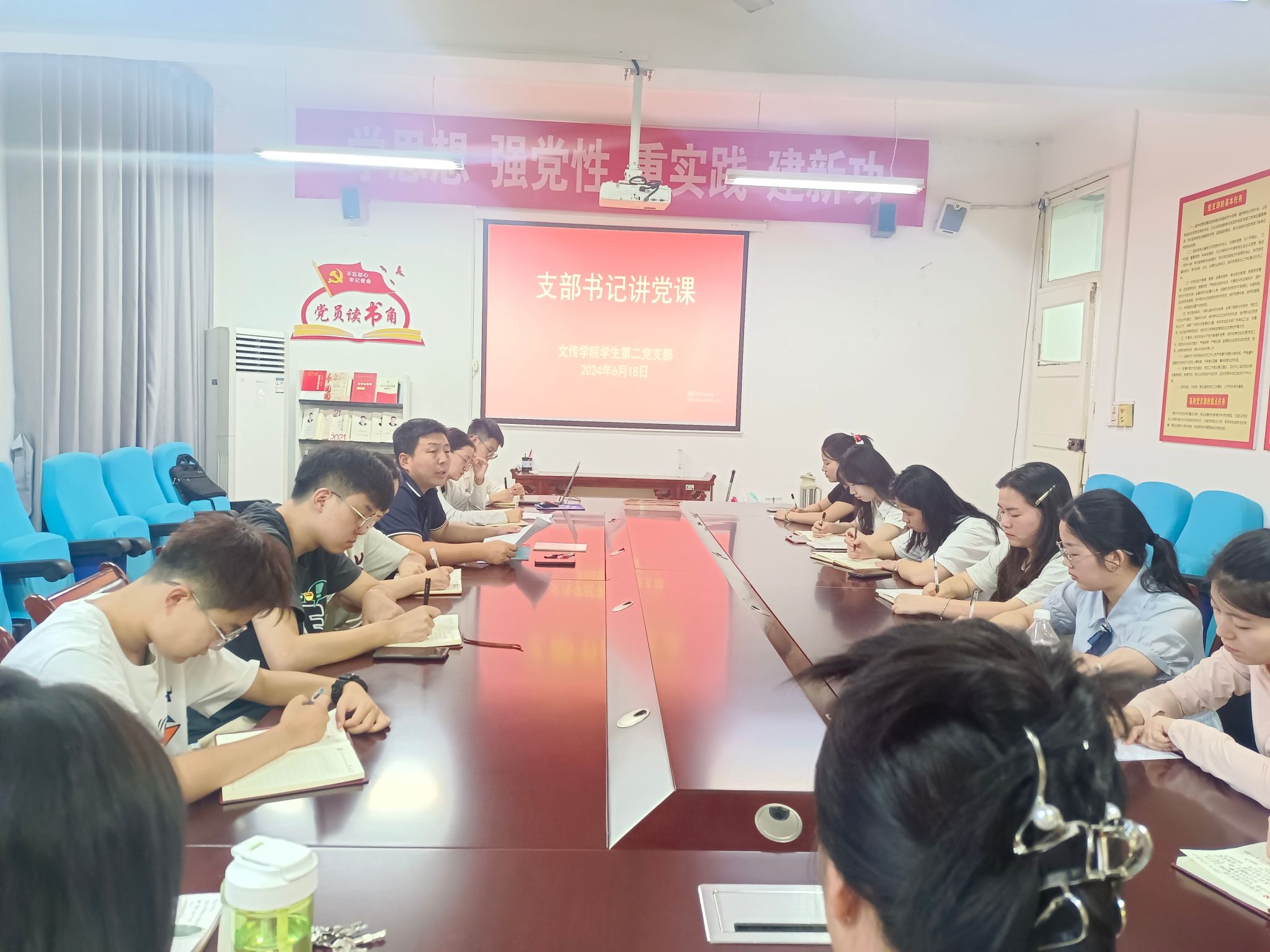 为推进党纪学习教育走深走实,6月18日晚上,Beat365唯一官方网站学生第二党支部组织开展支部书记讲党课,全体党员参加学习。