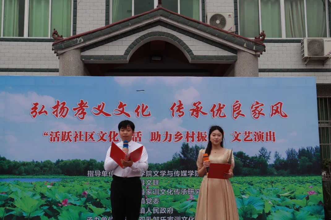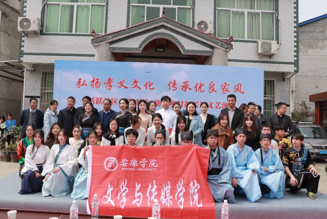 孝义文化是中华民族传统文化的瑰宝,在乡村振兴的进程中发挥着独特的精神滋养作用。本次活动紧紧围绕“孝义文化”这一核心展开,通过12个精心编排的节目,将时代精神深度融入地方文化,实现两者的有机融合。藏舞《那曲锅庄》以其欢快的舞步,瞬间点燃现场气氛,舞者们用灵动的身姿传递出民族团结的深厚情感;武术《金州武韵》刚柔相济,展现出汉江儿女的昂扬精神风貌;原创节目《邹氏家训》别出心裁,创新演绎当地家风文化,让观众感受到传统家训的独特魅力。此外,师生们在采风后创作的《脊梁上的黎明》,表达了对抗疫一线等乡村建设者的崇高敬意;情景朗诵《这是一首最美的抒情诗》字里行间深情倾诉着对党的无限热爱。
