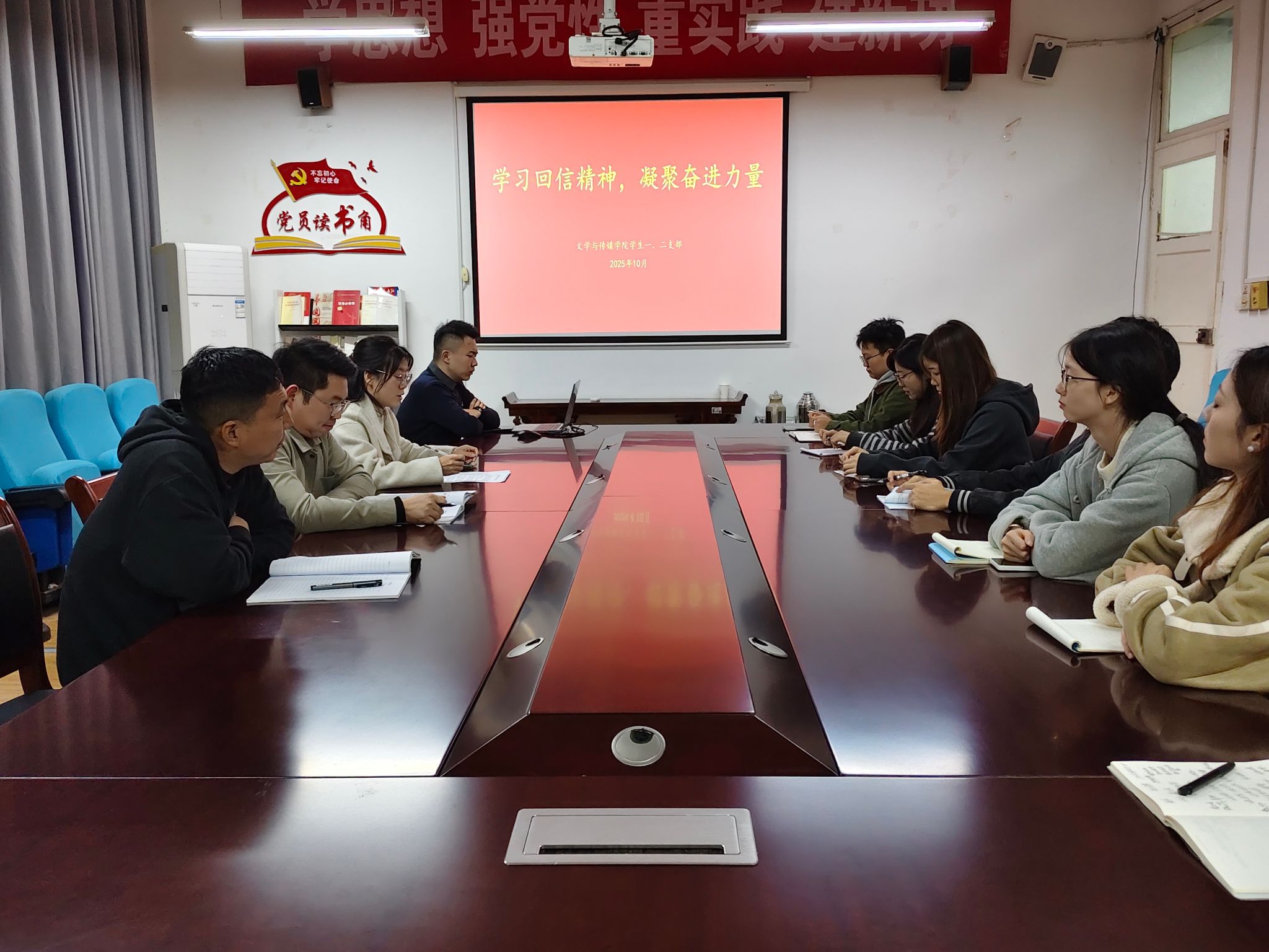 10月28日Beat365唯一官方网站学生一、二党支部联合开展“学习回信精神,凝聚奋进力量”主题党日活动,深入学习习近平总书记给特岗教师的重要回信精神党总支组织委员薛涛、学生一、二支部书记刘言军、喻言及全体学生党员参加活动
