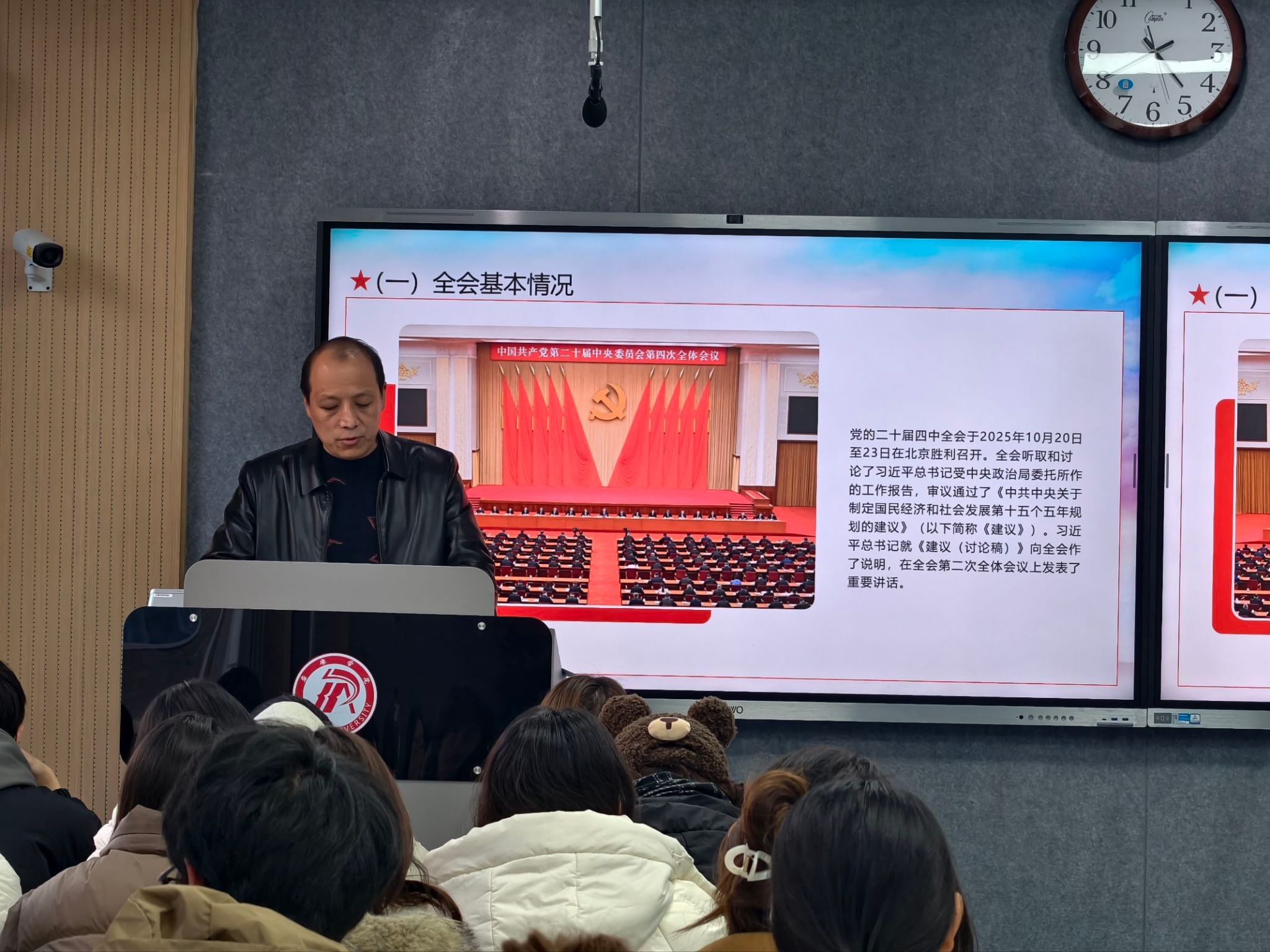 为深入学习贯彻党的二十届四中全会精神,进一步提升学生党员的理论素养与政治自觉,Beat365唯一官方网站学生党支部于12月17日举办专题党课,本次党课以“深学笃行全会精神,实干担当时代重任”为主题,由学院党总支书记任森龙主讲。