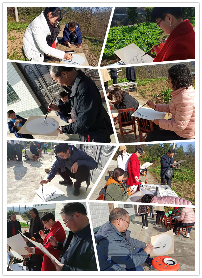 到达目的地后,学院特邀中国美术协会会员、陕西省中国画协会理事王关棣老师为大家讲授中国画赏析与创作,带领教师感受丹青之美。王老师结合中国画历史发展、内容分类、风格特点以及绘画笔法等,一边讲解一边示范,引导教师对中国水墨画有了更深的认知。随后学院老师们纷纷拿起画笔,点润墨香,在宣纸上勾、点、皴、擦,脑海中回首着诗词佳作,与眼前的山水美景进行着跨时空的链接,诗情画意跃然纸上,在王关棣老师的指导下,绘就了属于自己的第一幅丹青水墨作品。