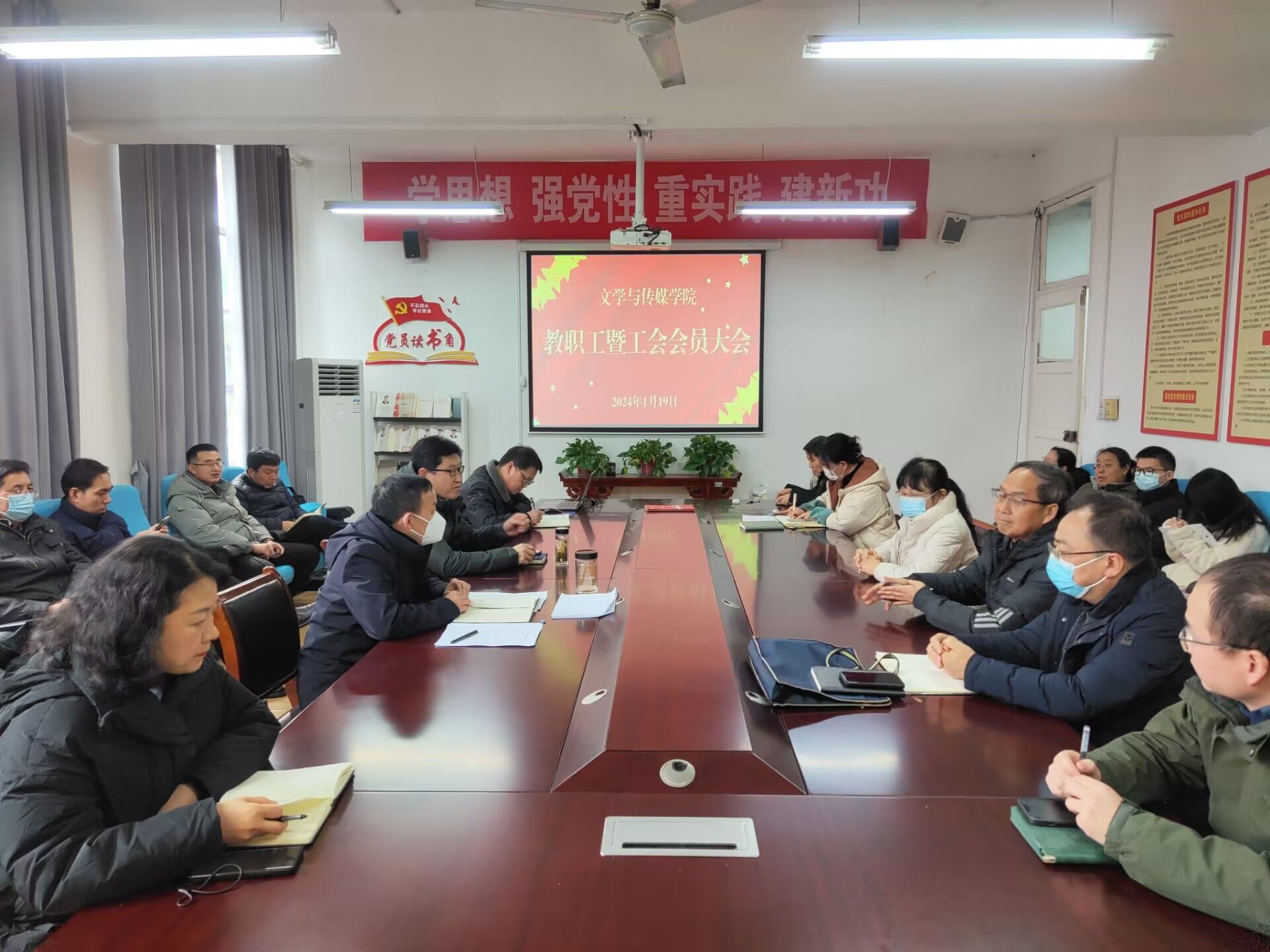 2024年1月19日,Beat365唯一官方网站全体教职工在学院会议室召开教职工暨工会会员大会,学院全体教师参加了本次会议。