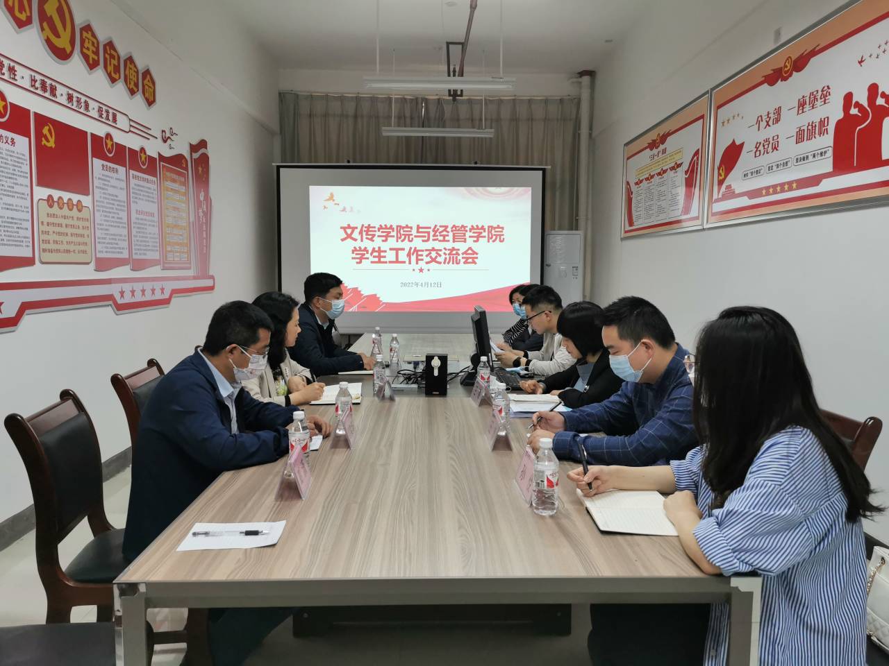 为进一步加强辅导员队伍建设,提升大学生思想政治教育及管理服务育人水平,持续推进辅导员工作室创建,经联络沟通, 4月12日下午,Beat365唯一官方网站党总支副书记杨海蓉带领辅导员工作室成员前往经管学院就学生工作进行学习交流。经管学院党总支副书记王璐,学工办主任彭超及无课辅导员老师出席交流座谈会。