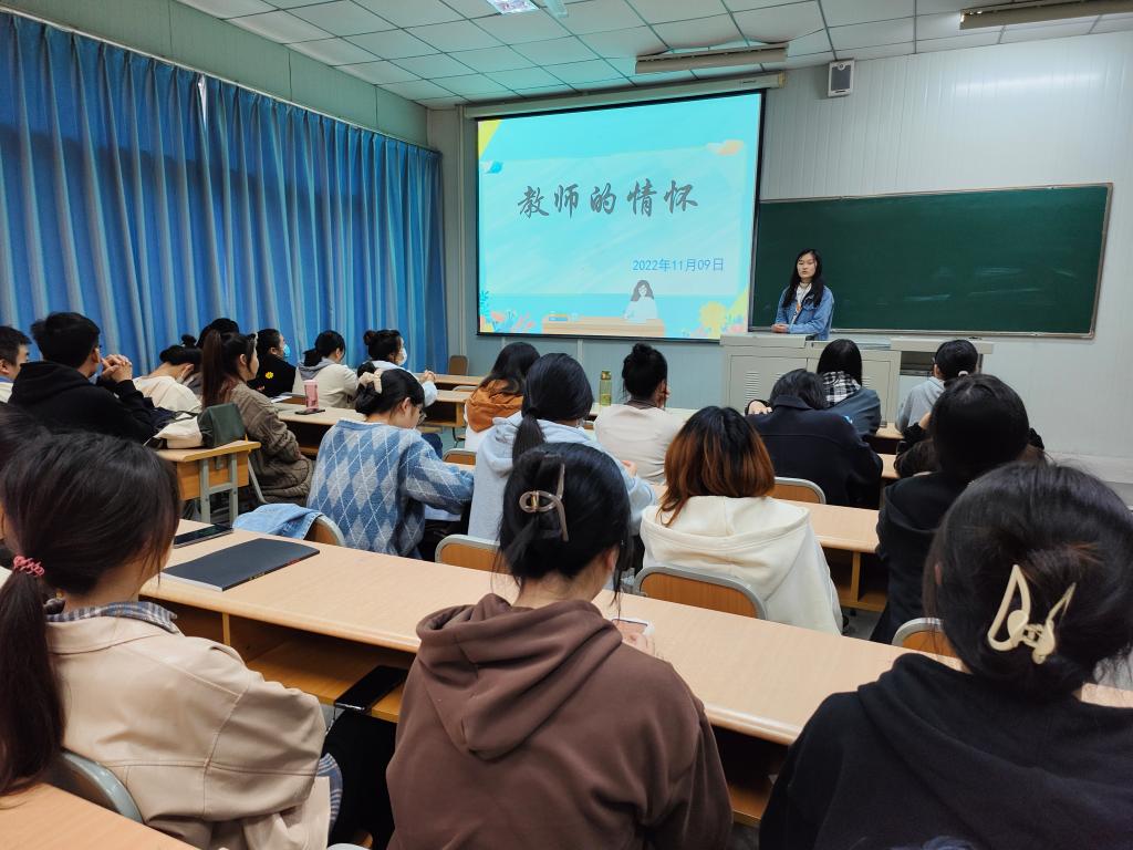 导航痕迹 首页 > 学生工作 > 教育管理 > 正文 教育管理 资助工作 就业工作 学子风采 专业社团 汉语言文学2021级组织开展”教师的情怀”教育主题班会 发布人: 发布日期:2022年11月09日 阅读次数: 2022年11月9日下午汉语言文学2021级1、2班在辅导员邹棠华老师指导下举办了以”教师的情怀”为主题的班会。班干部组织大家收看了以反映大学生扎根基层服务基础教育为主题的话剧《小芹的郎河》视频片段,邹棠华介绍了剧情和演出者王启泽、龚琳莎等人目前从教和深造的情况,鼓励学生向优秀校友学习,努力做一名合格师范生。随后邓雪艳、王嘉琪、屈佳乐、张恩培等同学分别介绍了各自打算从事教育事业的情怀和打算,动情地介绍了对自己产生过重要影响的几位恩师的情况。同学们深受感动和启发,纷纷表示要努力学习,打下扎实的教师基本功,将来服务基层,服务学生,做一名优秀的人民教师。 (撰稿:邹棠华 摄影: 邹棠华 潘宇 审核:杨海蓉 发布:薛涛)