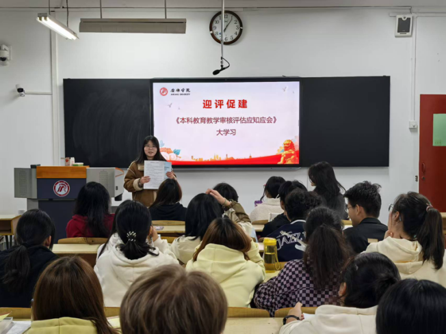 学院组织辅导员团队,通过集中宣讲、资料解读等方式,深入阐释新一轮本科教育教学审核评估的核心要点,向学生详细介绍评估的目的、流程和标准,涵盖了学院在教学、科研、实践等方面的丰富信息,使学生对学院的教育教学状况有了更系统的认识。此次大学习活动降低了同学们对审核评估的陌生感,让他们深刻认识到审核评估对于学院发展的关键意义,以及自身在其中所承担的责任,为后续积极参与评估相关工作奠定了坚实的思想基础。