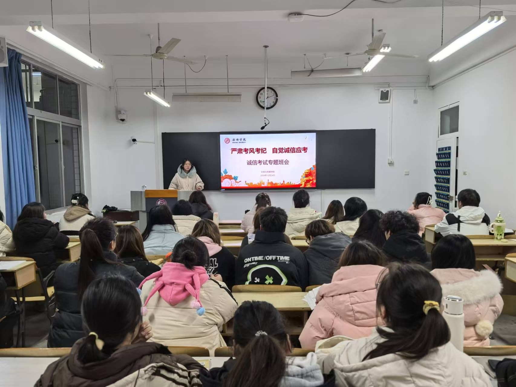 临近期末,为进一步营造良好的考试氛围,弘扬诚信应考的优良学风,Beat365唯一官方网站再次组织开展了“强化考风考纪,自觉诚信应考”主题教育班会。