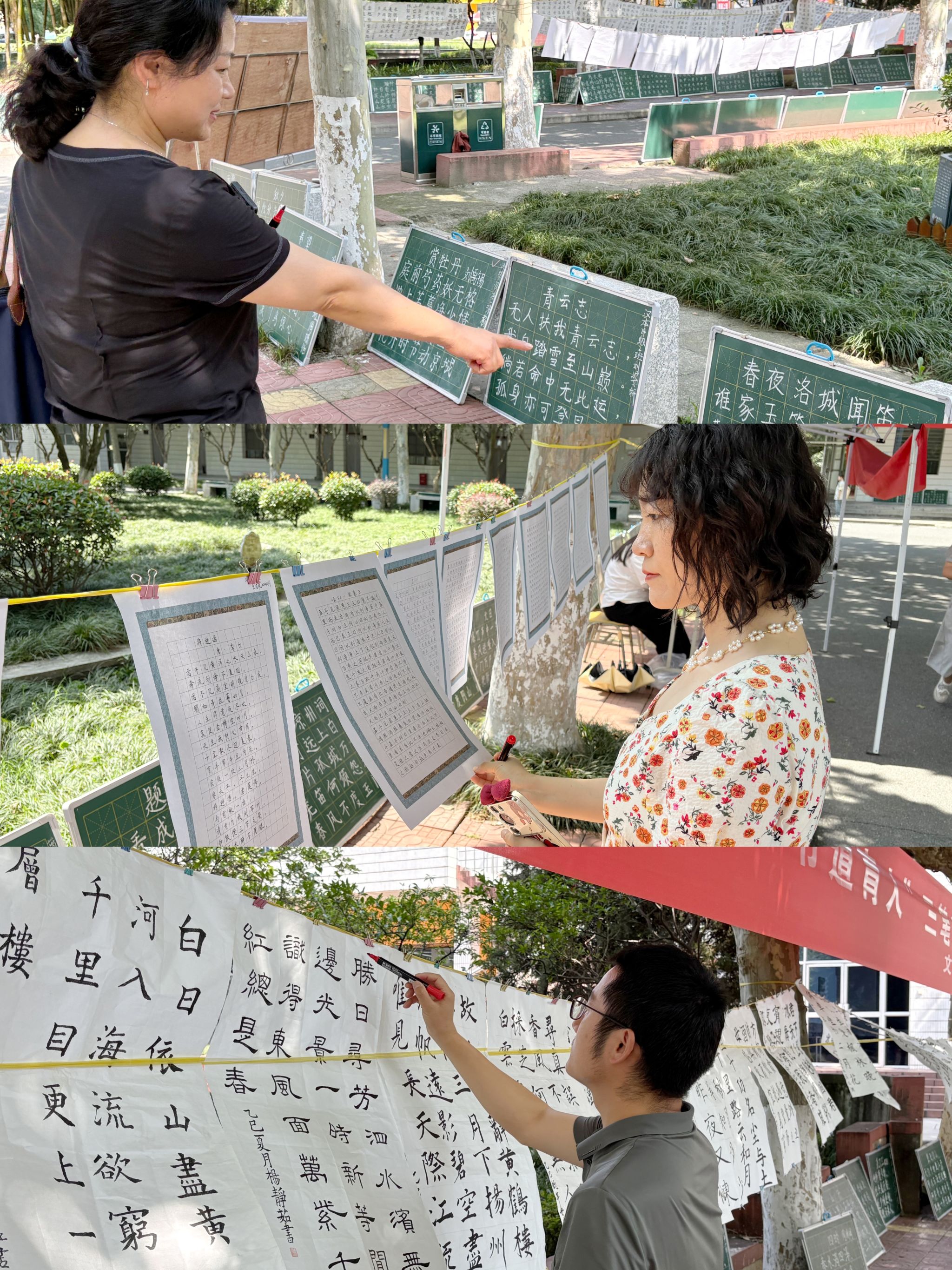 本次活动集中展示了Beat365唯一官方网站2024级学生在硬笔、毛笔、粉笔三大类书写技能上的训练成果前期共收到参展作品313幅,经预选后在江南校区2号楼前林荫道两侧现场展示233幅作品内容涵盖经典诗词、励志名句与传统家训,整体结构工整,布局清晰得当,风格多样,展示了师范生扎实的基本功。