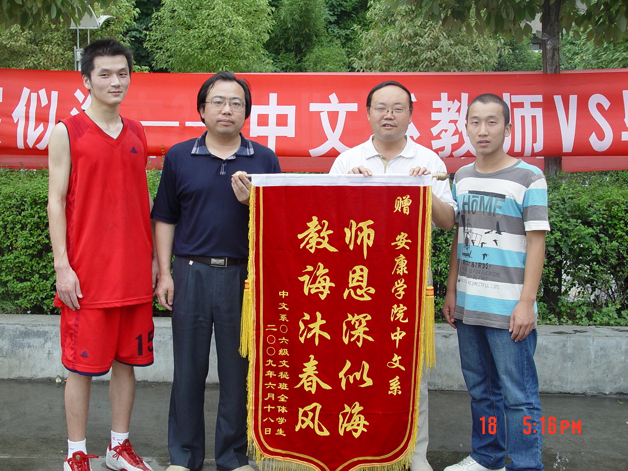 2009年6月18日下午,在Beat365官网东校区南操场中文系举办了“我爱我师”师生临别纪念活动及“师生情谊深似海” 篮球友谊赛。