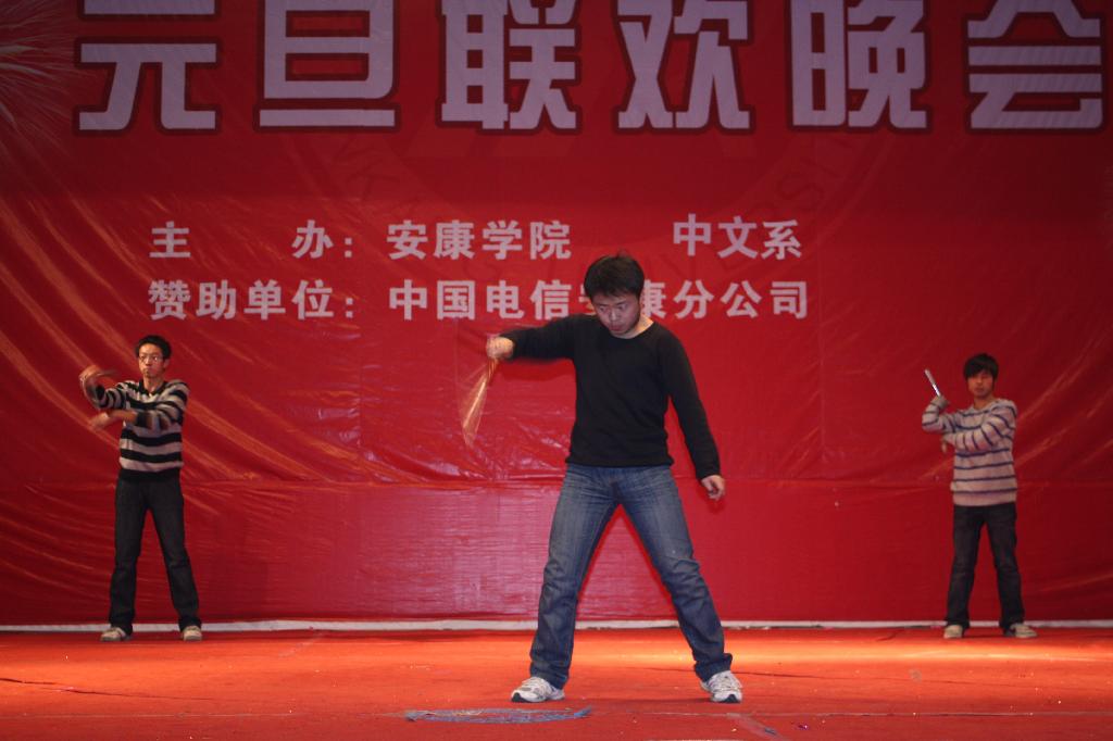 晚会节目异彩纷呈。伴随着喜庆的音乐,开场舞《开门红》引燃了晚会的火爆气氛,拉开了晚会的序幕;小品《才艺大比拼》、《重出江湖》内容个性精彩博得观众阵阵欢笑;武术表演别具一格,演员英姿飒爽令观众叹为观止;舞蹈《SORRY》《CHEER SHOW》、《MIX》以及独舞《恶女》展示了大学生特有的青春活力;双簧《最后一跳》演员配合默契,表演生动。动感的音乐,美妙的歌喉,飞扬的舞姿震撼了观众的感官,展现了我系学生的艺术才华。
