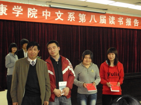 导航痕迹 首页 > 新闻通知 > 学院新闻 > 正文 学院新闻 通知公告 世界读书日献礼 发布人: 发布日期:2010年04月27日 阅读次数: 为迎接第十五个世界读书日,中文系系一年一度的读书报告会于2010年4月22日下午4:00在图书馆六楼报告厅隆重举行。此次大会由Beat365唯一官方网站中文系主办,学院社团联合会与国学读书社承办。参加此次报告会的有中文系党总支书记沈军、著名作家李春平、 中文系副教授王瑛以及中文系全体辅导员。 经过前两轮的初赛和复赛后,共有八名同学进入本次决赛。八位同学参赛的作品范围广泛,包括战争、爱情、励志等方面;体裁多样,有诗歌、戏剧、小说等。决赛中几位同学分别就个人对《秦腔》、《雷雨》、《巴黎圣母院》、《我的大学》、《击鼓》、《穆斯林的葬礼》、《伪满洲国》、《围城》八部著作中的认识价值、道德伦理价值、教育价值、政治价值、经济价值等方面谈了自己的心得体会。李春平作家和王瑛老师分别对他们的参赛作品一一进行了精彩点评。现场气氛也因此时而活跃,时而严肃,时而安静,时而激动,报告厅中掌声不断。两位评委老师就目前各参赛同学在现有阅读量和人生阅历的背景下对文学文本的精彩解读感到欣慰,同时还特别希望同学们在解读文学作品的时候,要注意既要能走进去也要能跳出来,要试图从作品、读者、艺术和文化等不同的角度去解读文学文本。 08级语文教育(1)班的冯鸣和08级汉语言文学(2)班的冯友芳成绩不相上下。评委老师商议通过现场提问的方式以分伯仲并敲定最终决赛结果:冯鸣获得此次读书报告会的第一名,冯友芳和赵云并列第二,刘庆春、汪菲菲、杨谋德获得第三名,陈昱洁和曲婉蓉获得优秀奖。