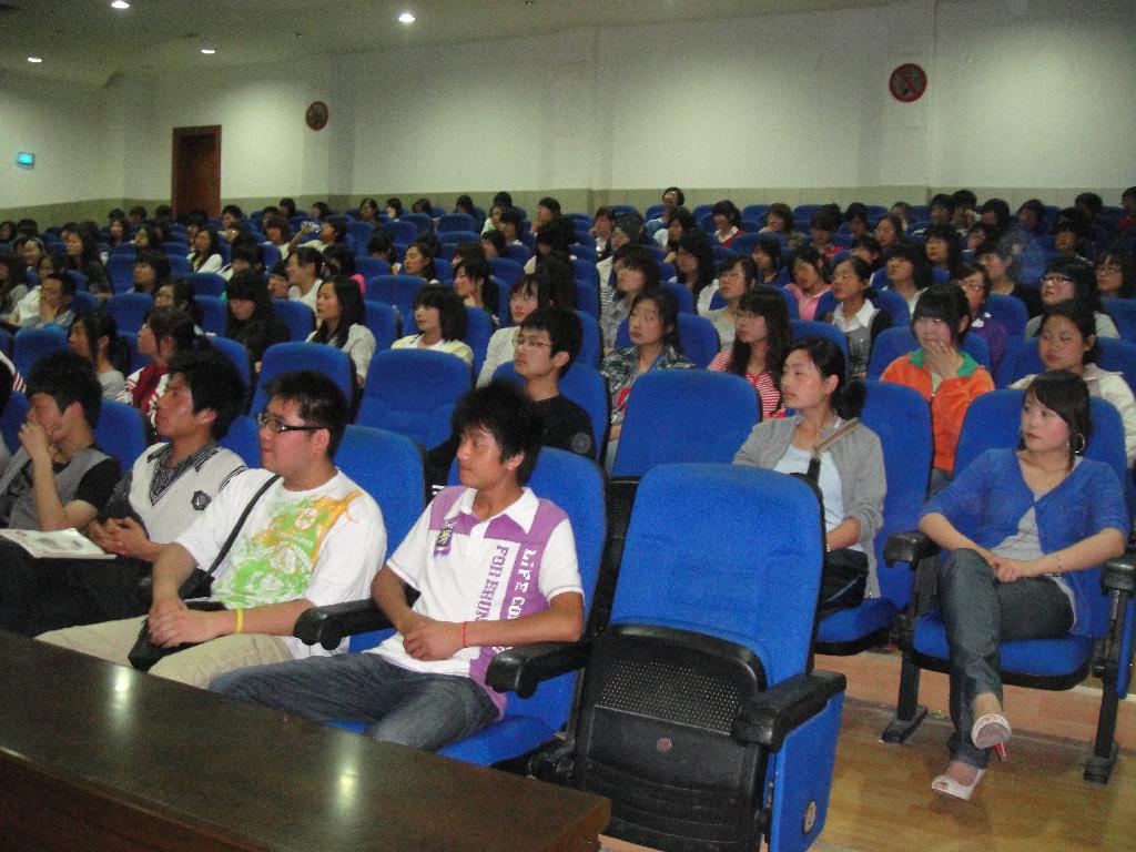 2010年4月28日晚,在中文系电影文学社的组织下,09级语文教育2班学生邓昕在一号教学楼六楼报告厅做了一场题为’我看华夏文化“的读书报告。在报告中邓昕同学以他幽默的语言给同学们做了一场精彩的报告。邓昕同学首先从历史的演变概括了华夏文化的发展脉络,接着重点从华夏文化中的礼仪和服饰方面谈了自己对华夏礼仪文化和服饰文化的独特见解。在讲解古代礼仪时,邓昕同学身穿汉服,当场示范各种古代礼仪,博得同学们的阵阵喝彩。