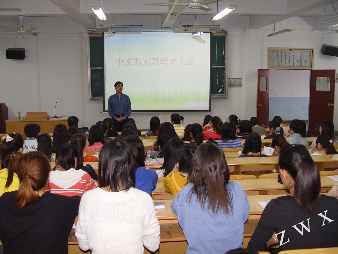 2012年9月26日,中文系召开了2013届学生实习动员会,130余名实习生参加了大会。会议由邹棠华主持,系党总支书记李岩、系副主任梁卫华、辅导员艾全霞参加了会议。