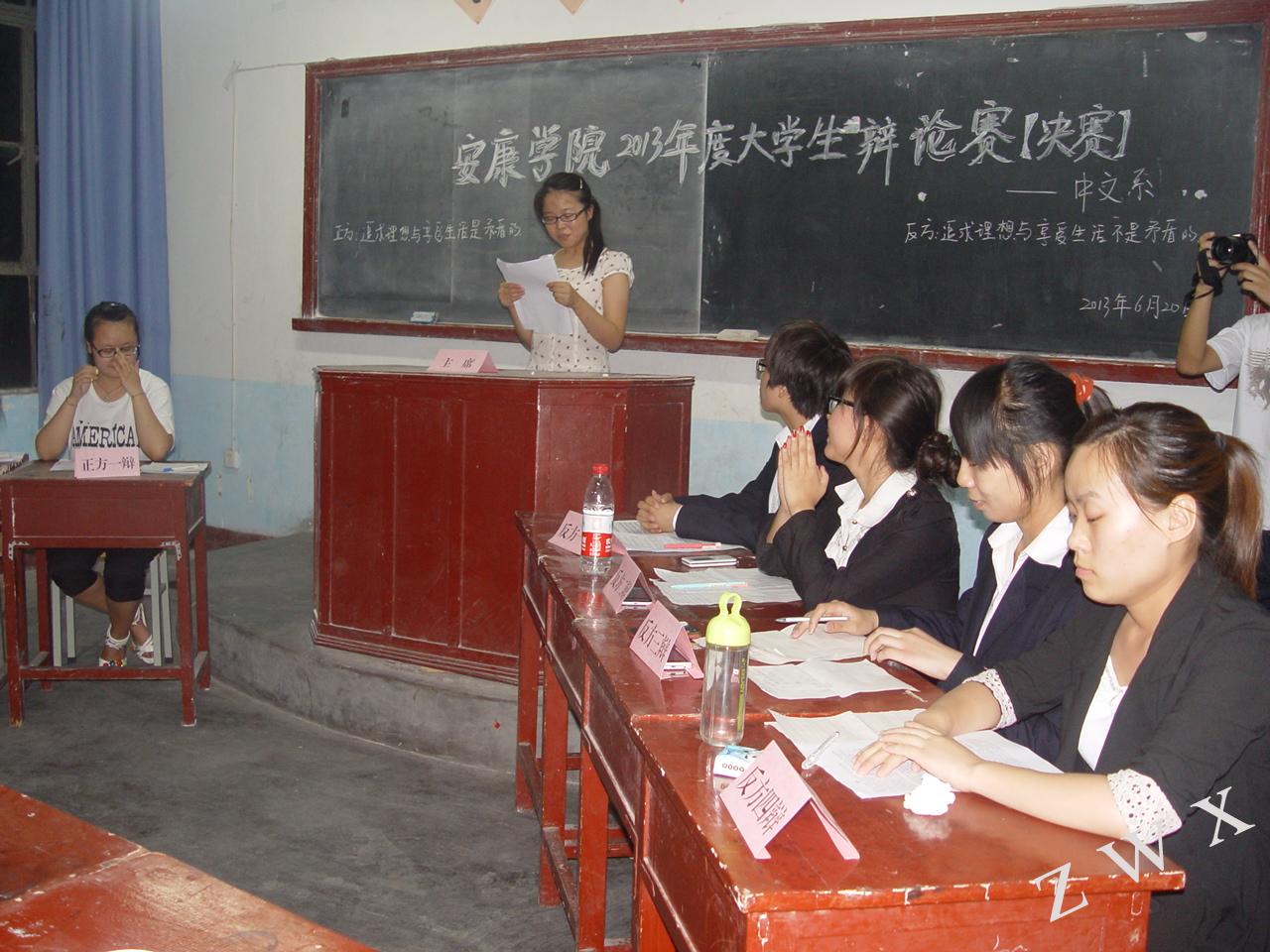 2013年6月20日晚8时,我系 “金雀杯”辩论赛决赛在江南校区2号楼2305教室拉开帷幕。本场决赛的评委由系党总支书记李岩、中文系副主任梁卫华、中文系辅导员艾全霞、中文系副教授杨静及系学生会主席牟童担任。