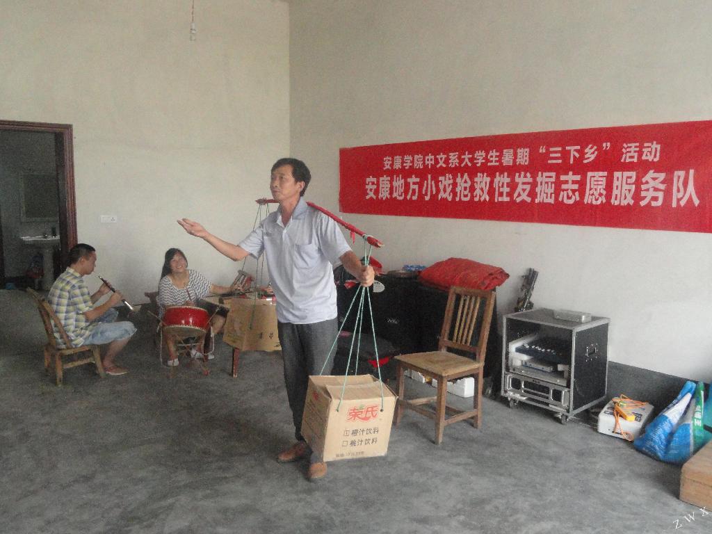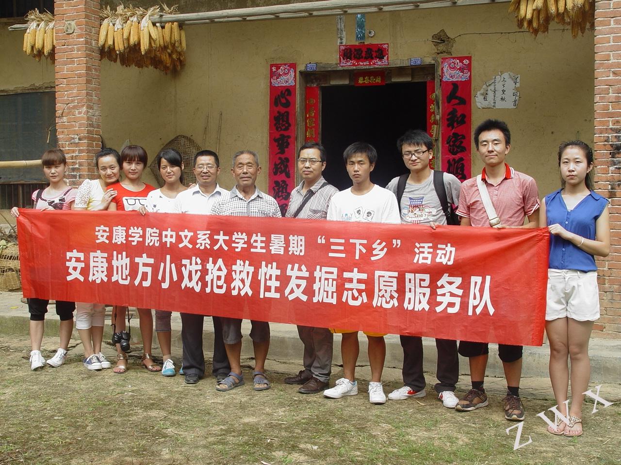 为提高学生的社会实践和科研能力,本着对地方非物质文化遗产的保护,中文系学生成立了“安康地方小戏抢救性发掘志愿服务队”,于今年暑期在汉阴县展开了小戏调查及发掘整理工作。