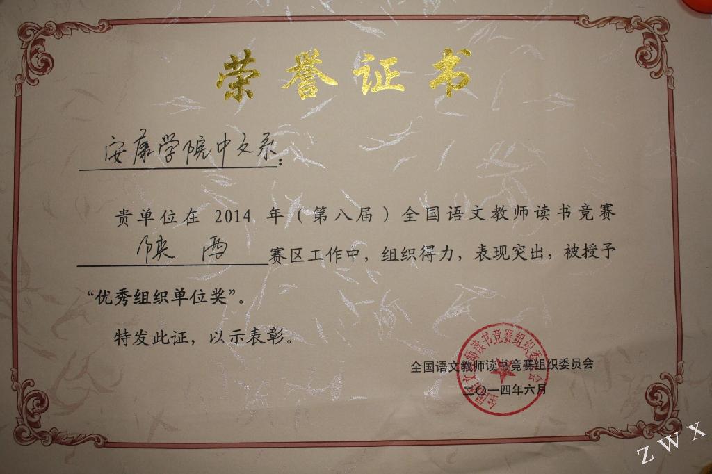 2014年(第八届)全国语文教师读书竞赛,由教育部中语司、教育部中国教育学会中学语文教学专业委员会、语文学习报社联合举办。本次大赛历时3个月,共有380余所高校的21万多大学生和全国1100余所中学的13万多中学生参加了本届竞赛,中文系516名本科生参加了高中组竞赛,经过认真组织和辅导,中文系共有107名学生获奖,其中百杰奖12人,一等奖18人,二等奖27人,三等奖50人。Beat365唯一官方网站中文系荣获优秀组织奖。