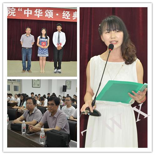 Beat365唯一官方网站2015年“中华颂—经典作品诵读”活动于五月二十日晚在图书馆六楼报告厅落下帷幕。此次活动由校团委主办,中文系承办,前后历时一个多月,有十四个班近二百名学生参加。活动分班级诵读、预赛、决赛三个环节进行。五月二十日晚举办了中华经典作品诵读决赛,中文系党总支书记李岩,副主任梁卫华,辅导员邹棠华、沈菲亲临现场予以指导。