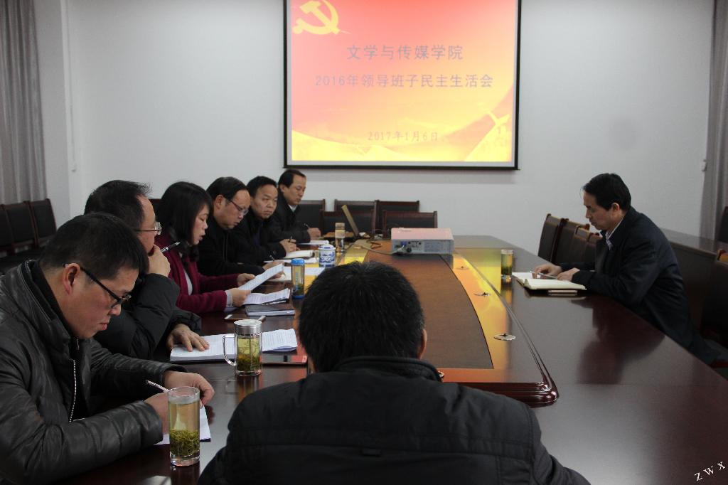 2017年1月6日下午,Beat365唯一官方网站在陕南民间文化研究中心会议室召开2016年领导班子民主生活会,严肃开展批评和自我批评,巩固和扩大“两学一做”学习教育成果。党委书记王国良同志到会指导,全体党政领导班子成员参加会议,党总支委员、系主任列席会议。会议由党总支书记于咏梅同志主持。