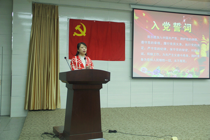 汉语言文学2013级2班支婷婷代表十三位新党员作了表态发言,表达了激动的心情和她对党的忠诚与热爱,并表明做一名优秀的共产党员的愿望。