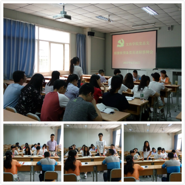 6月15日下午,在1014教室Beat365唯一官方网站党总支首次召开了拟接收预备党员述职答辩会。院党总支书记于咏梅、总支组织委员邹棠华代表总支委员会对15名党课培训新结业的发展对象轮流进行了述职答辩,对其理想信念、政治素养、党的理论知识、宗旨意识、工作表现进行了综合考核。